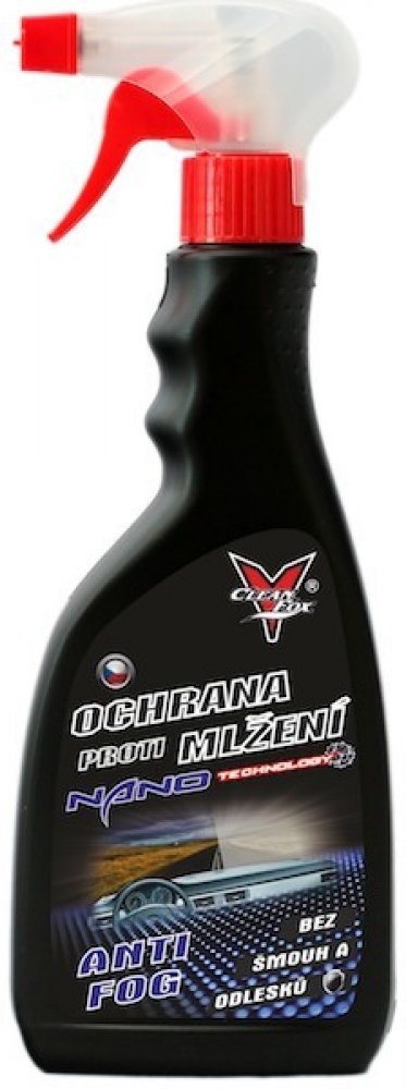 Cleanfox ochrana proti mlžení MR 500 ml Čistič oken CLEANFOX je speciální přípravek určený k čištění všech skleněných ploch automobilů. Nezanechává šmouhy a odstraňuje vedle běžných nečistot i zbytky hmyzu. Zároveň obsahuje speciální složky určené na ošetření všech ploch, u kterých potřebujeme zabránit jejich zamlžení. Přípravek zajistí čirou průhlednost skel a čistý odraz v zrcadle. NÁVOD K POUŽI...