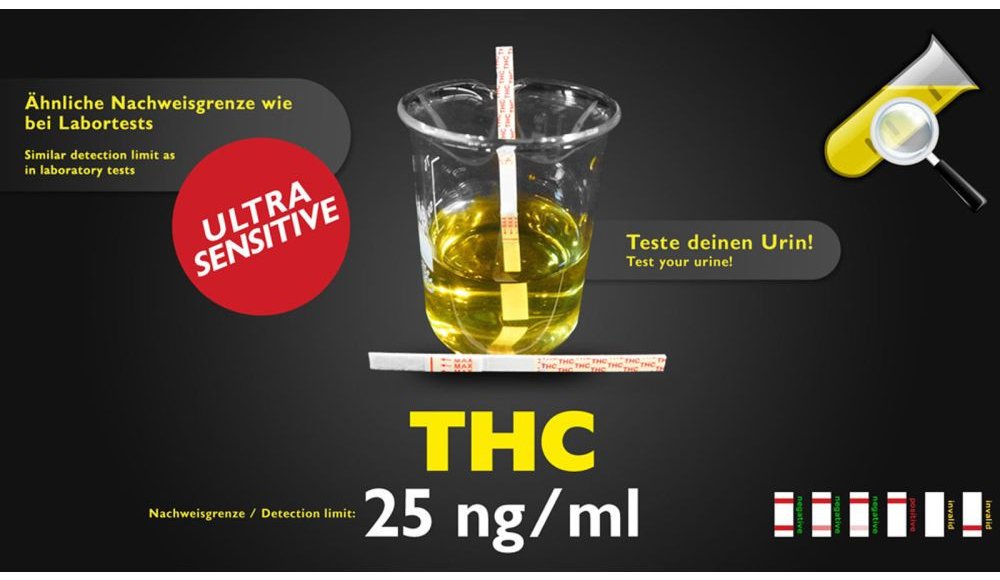 This test allows urine to be tested easily for products of decomposition and residues of THC. This urine test (unlike a standard test) has a sensitivity level similar to that in the lab and therefore reacts even to small amounts of residue in the urine. Included: 1x test strip THC (detection limit 25 ng/ml), 1x detailed instructions.