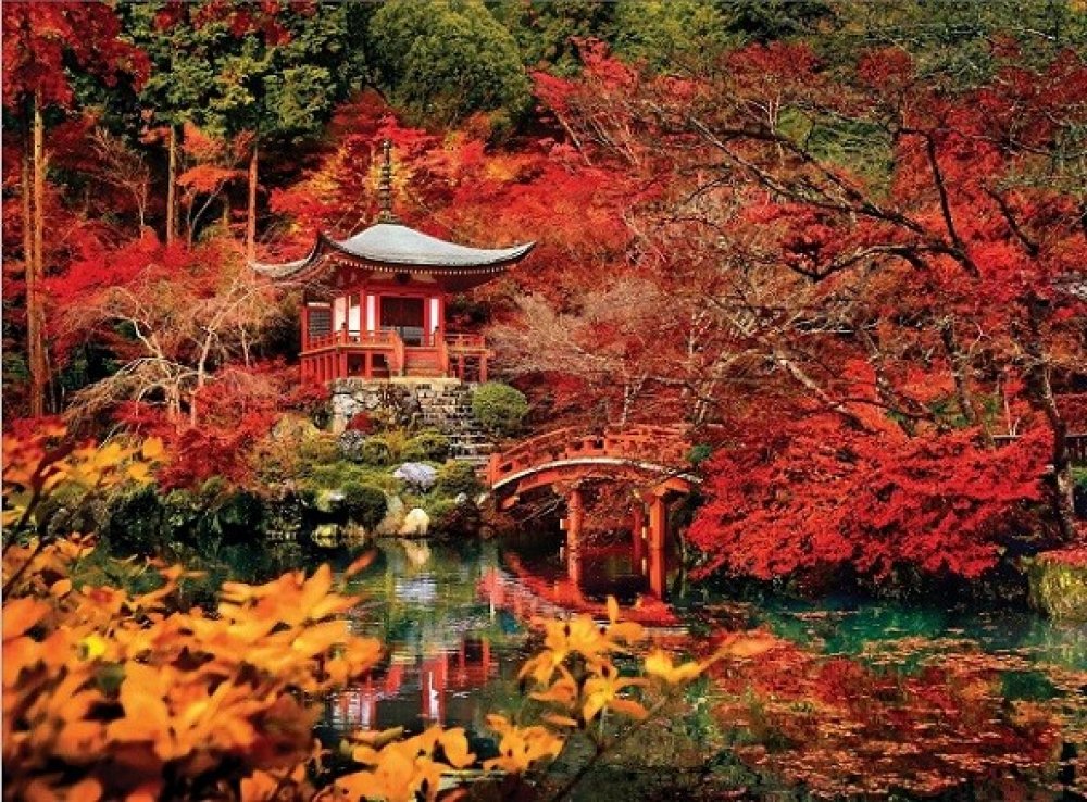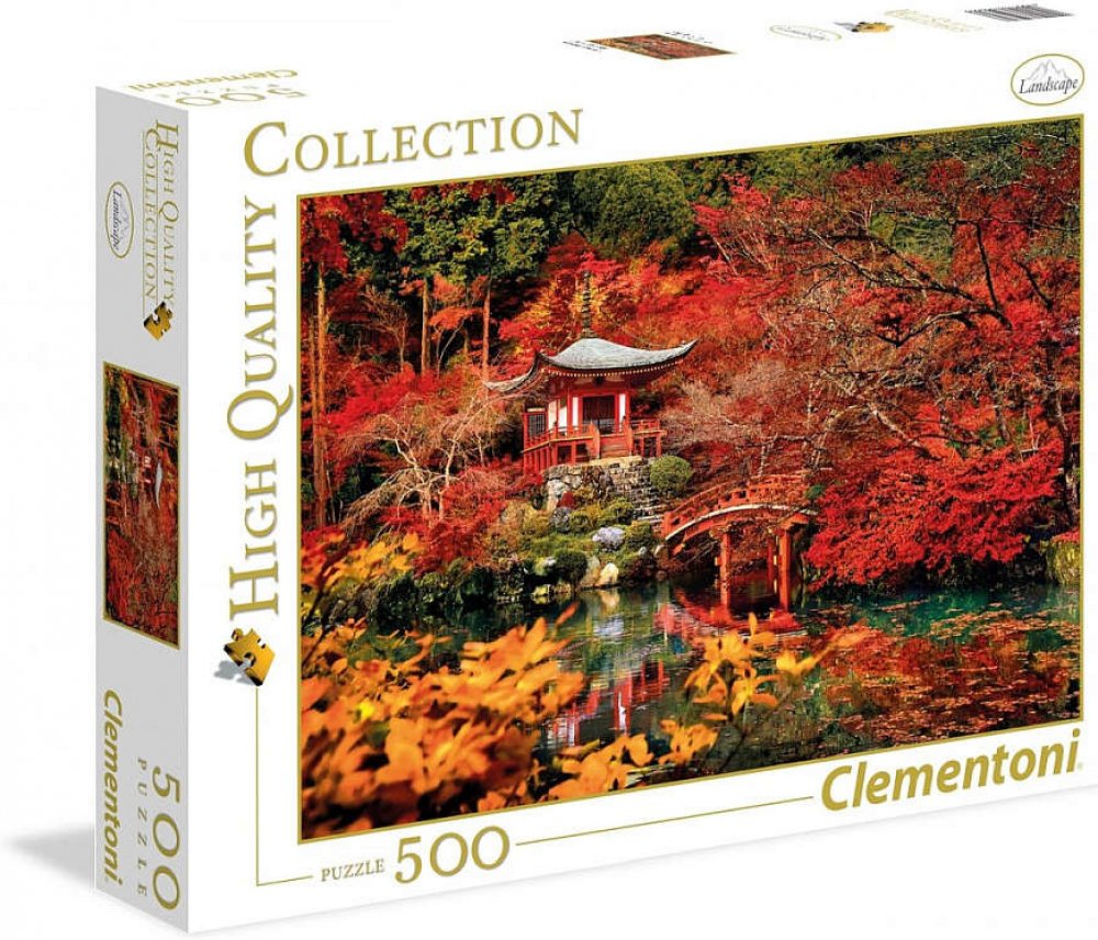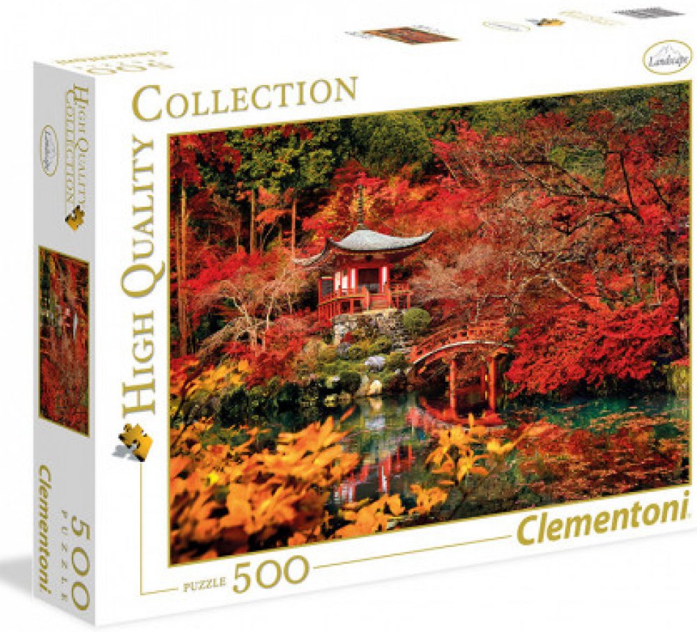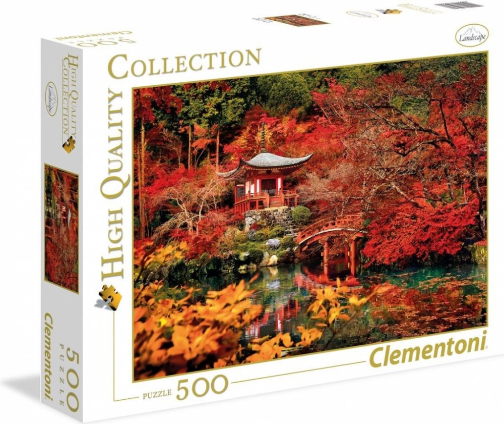 Puzzle od italské firmy Clementoni v obdélníkovém tvaru s krásným motivem Sen v orientu. Na obrázku je zachycen altánek stojící na břehu řeky obklopený červeným a oranžovým listím.