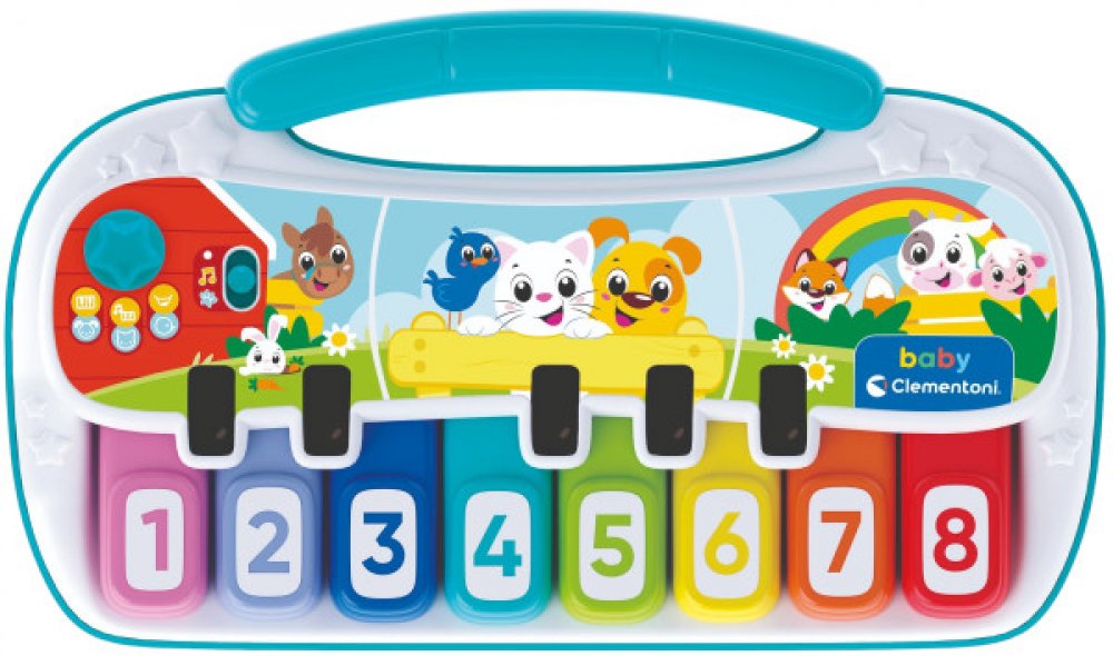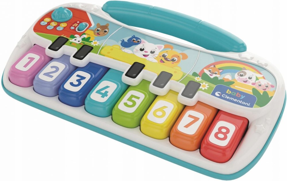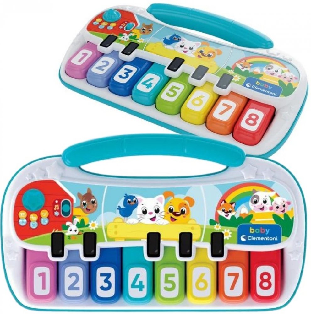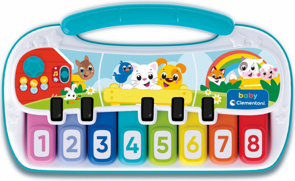 Piano zvířátka od Baby Clementoni Interaktivní piano zvířátka je ideální hračkou pro malé hudebníky, které nejen baví, ale také podporuje jejich kreativitu a vývoj. Základní popis a funkce Piano je vybaveno klávesami s různými zvířecími motivy, které děti stimulují k hraní a objevování zvuků zvířat. Děti mohou hrát melodie, cinknout a objevovat nejen hudbu, ale i zvuky, které jim pomáhají s učením nových slov a poznáváním zvířátek. Obsah balení a design V balení najdete piano a příruční návod. Piano je vyrobeno z kvalitních a bezpečných materiálů, které zaručují dlouhou životnost a bezpečnost během hry. Je navrženo v jasných barvách, které děti přitahují. Vzdělávací přínosy Rozvoj jemné motoriky a manuální zručnosti Podpora hudebního cítění a rytmu Poznání zvuků zvířat a rozvoj sluchových dovedností Podpora kreativního myšlení a zábavy Technická specifikace Hloubka: 5.