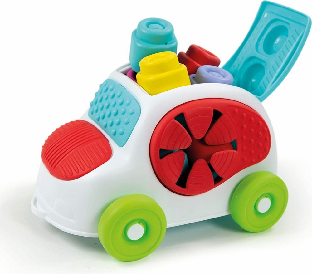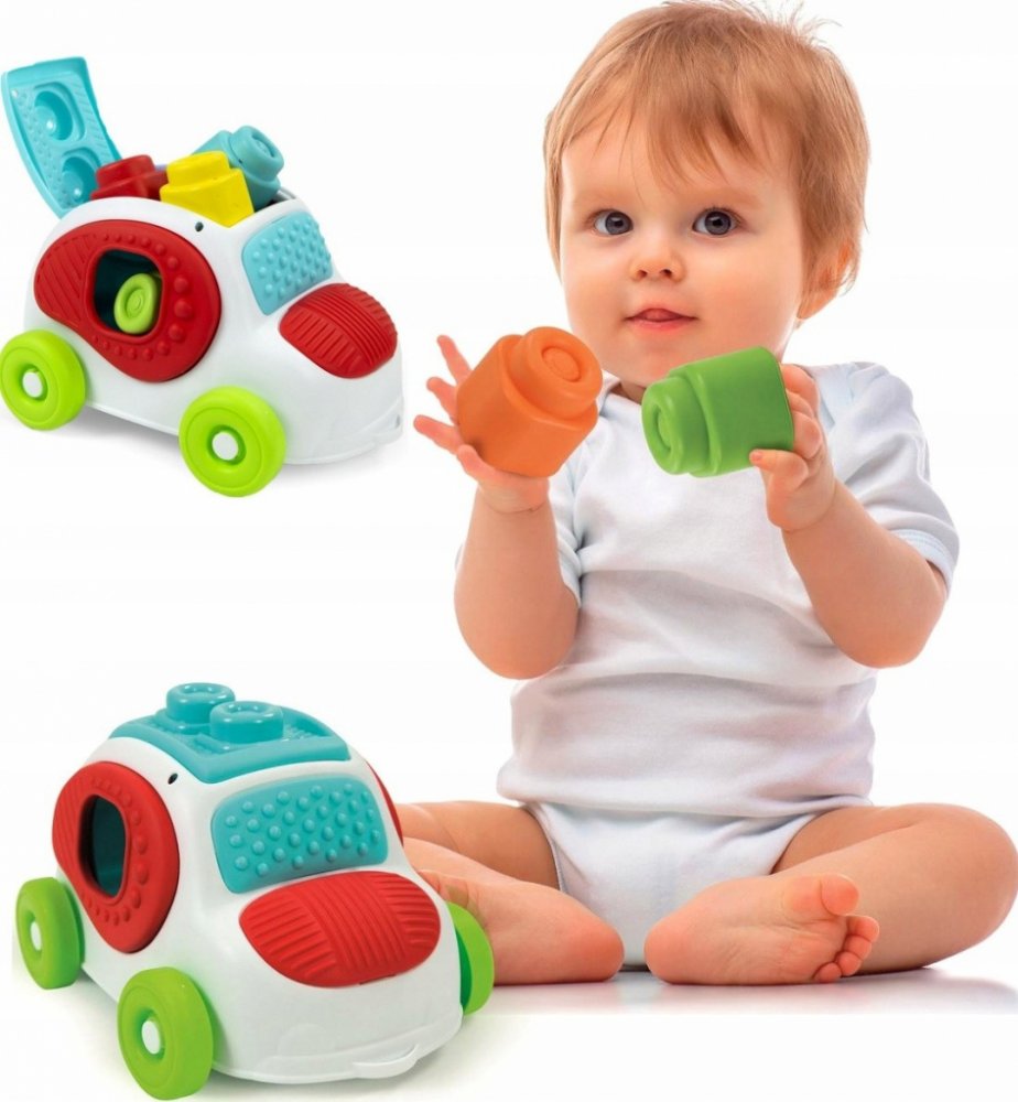 Zábava s vkládacím autíčkem. Díky CLEMMY kostkám může dítě stavět své první komíny a stavby. Vkládání různých tvarů podporuje rozvoj jemné motoriky a dítě se učí poznávat geometrické tvary a barvy. Hra s kostkami rozvíjí senzorické vnímání, manuální dovednosti a prostorové vnímání. Plastový box ve tvaru autíčka je praktický pro uskladnění kostek a jeho víko s otvory zároveň umožňuje dětem trénovat...