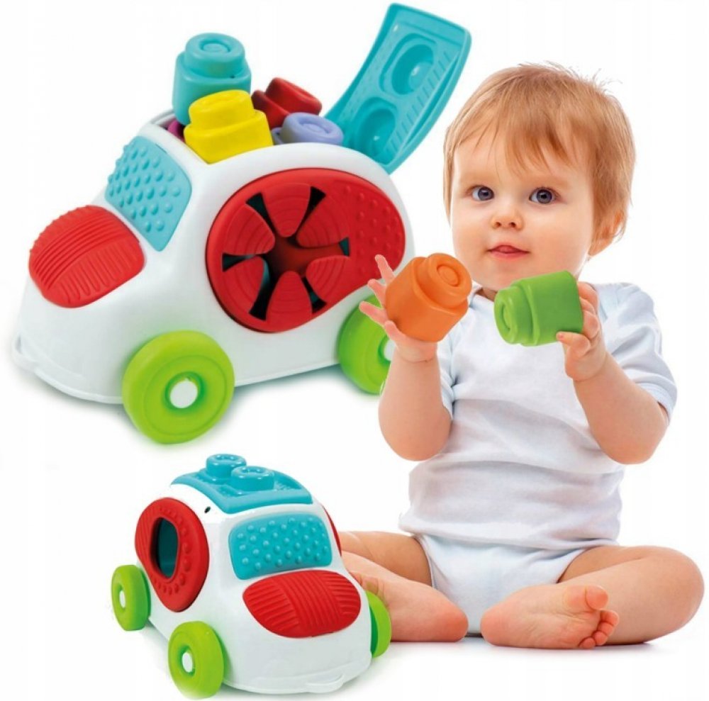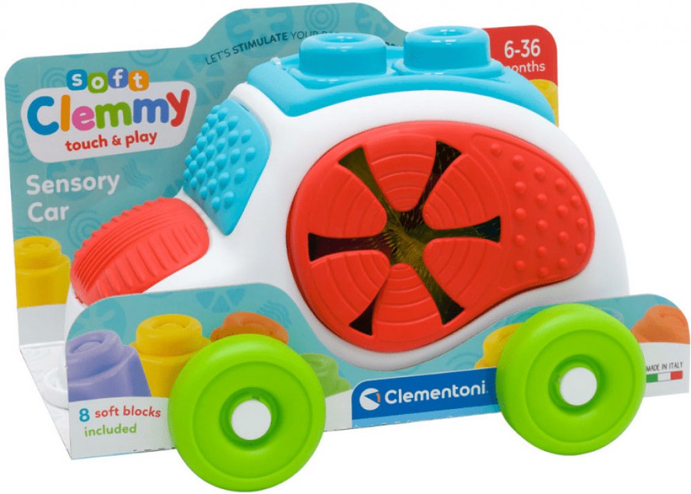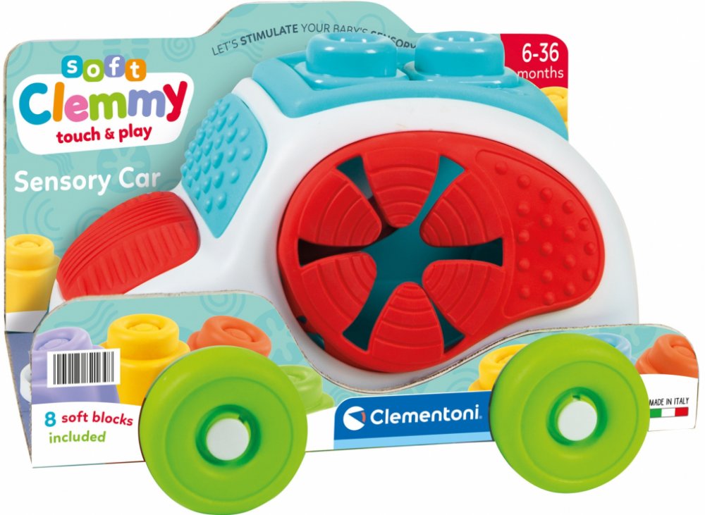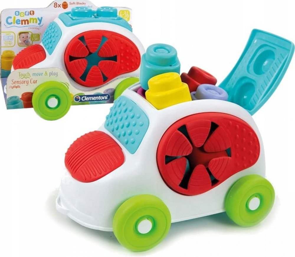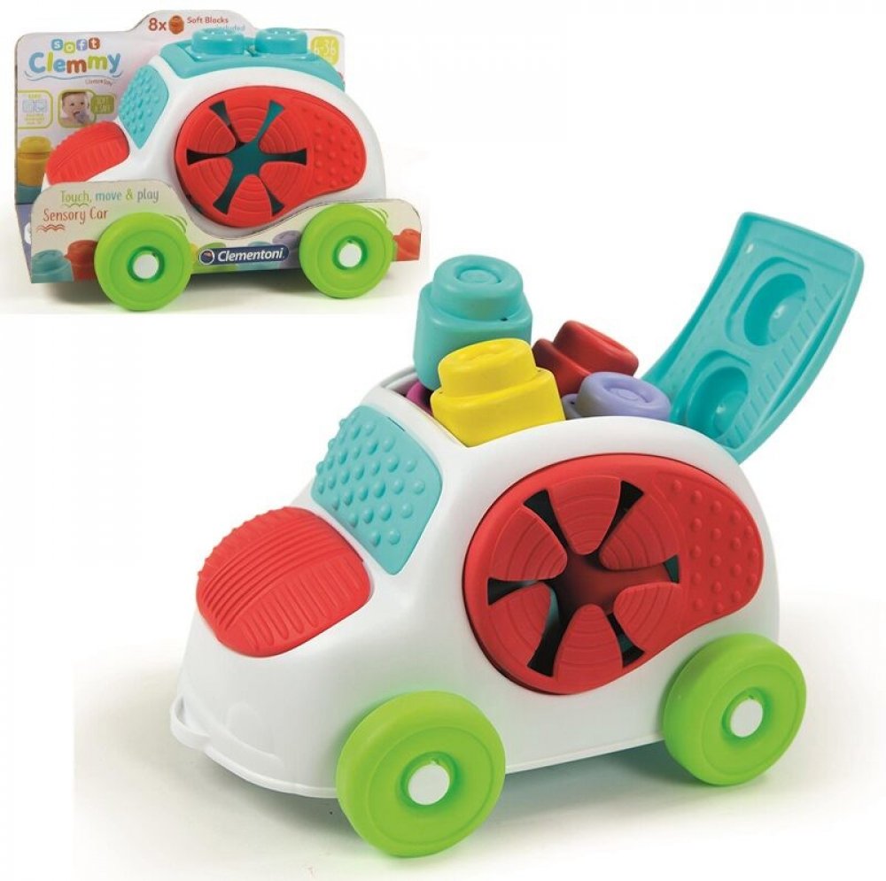 Zábava s vkládacím autíčkem. Díky CLEMMY kostkám může dítě stavět své první komíny a stavby. Vkládání různých tvarů podporuje rozvoj jemné motoriky a dítě se učí poznávat geometrické tvary a barvy. Hra s kostkami rozvíjí senzorické vnímání, manuální dovednosti a prostorové vnímání. Plastový box ve tvaru autíčka je praktický pro uskladnění kostek a jeho víko s otvory zároveň umožňuje dětem trénovat logiku a jemnou motoriku při vkládání tvarů do příslušných otvorů. Balení obsahuje: 8 barevných kostek a 1 plastové autíčko. Vhodné pro děti od 6 měsíců. POZNÁMKA: Kostičky lze používat i při hraní ve vodě, dají se mýt v myčce. Značka BABY CLEMENTONI je synonymem kreativity, nadšení a důrazu na kvalitu. Hračky pomáhají rodičům při komunikaci s dítětem. Vzhled hračky a její inovativní barvy, netoxické a pevné materiály, vytvarovaný povrch a různé funkce pomáhají při rozvoji hmatových a sluchových schopností, napomáhají pohybové aktivitě a vyvolávají první logické asociace. Z výrobků firmy jsou na českém trhu oblíbené zejména CLEMMY kostky, které jsou vyrobeny z měkké netoxické gumy. Ta je zároveň snadno omyvatelná a má lehkou vanilkovou vůni.