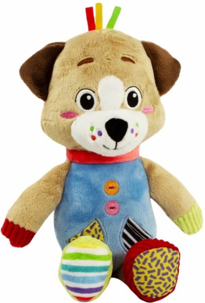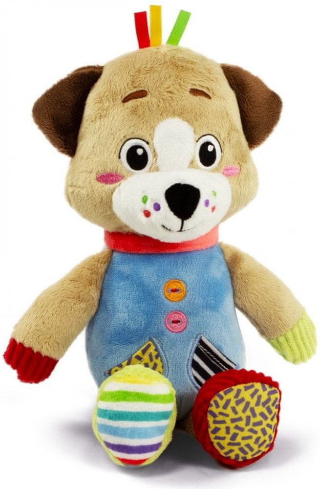 Měkká psí maskot vyrobený s ohledem na nejmenší, aby je povzbudil, aby si hráli ve světě plném lahůdek! Maskot je vyroben z různých materiálů, aby stimuloval multismyslový vývoj a podporoval rozvoj hmatového vnímání v nejranějších fázích života. Ideální společník pro vyvíjející se dítě. Měkká plyšová hračka má malé kousátko, připravené speciálně na prořezávání zoubků nejmenších uživatelů hračky.