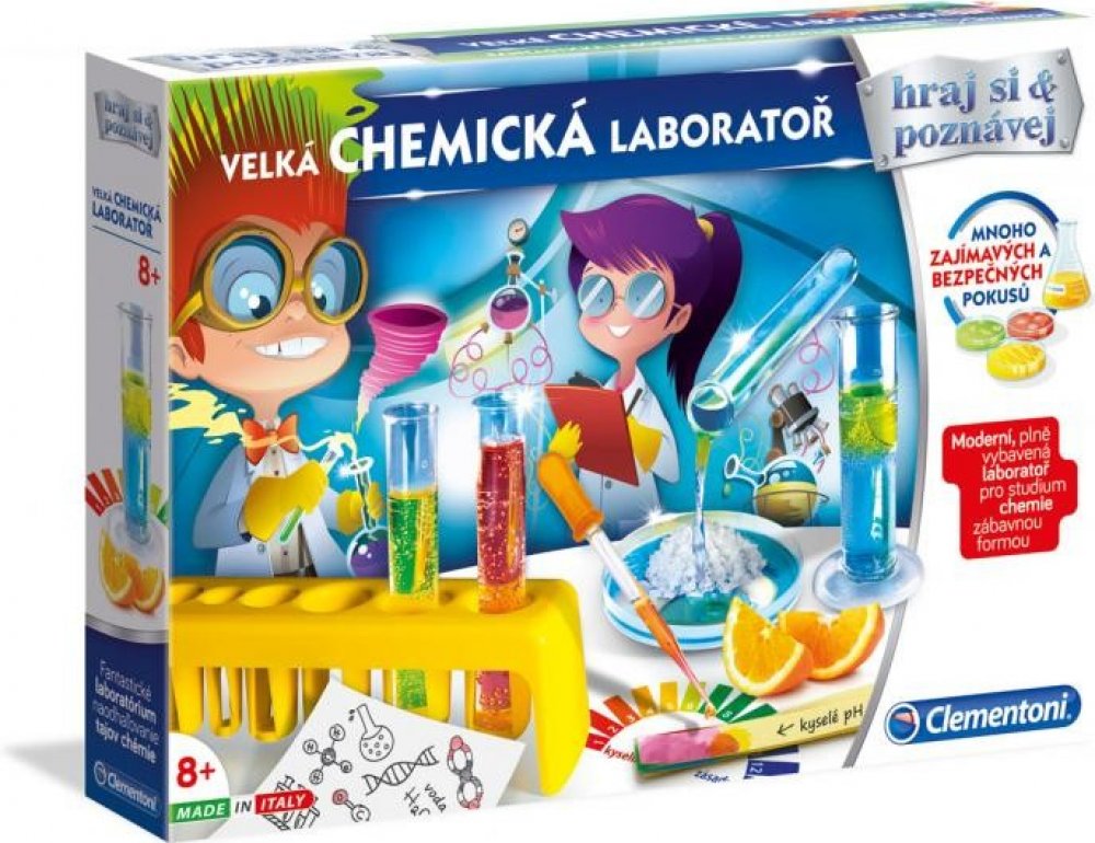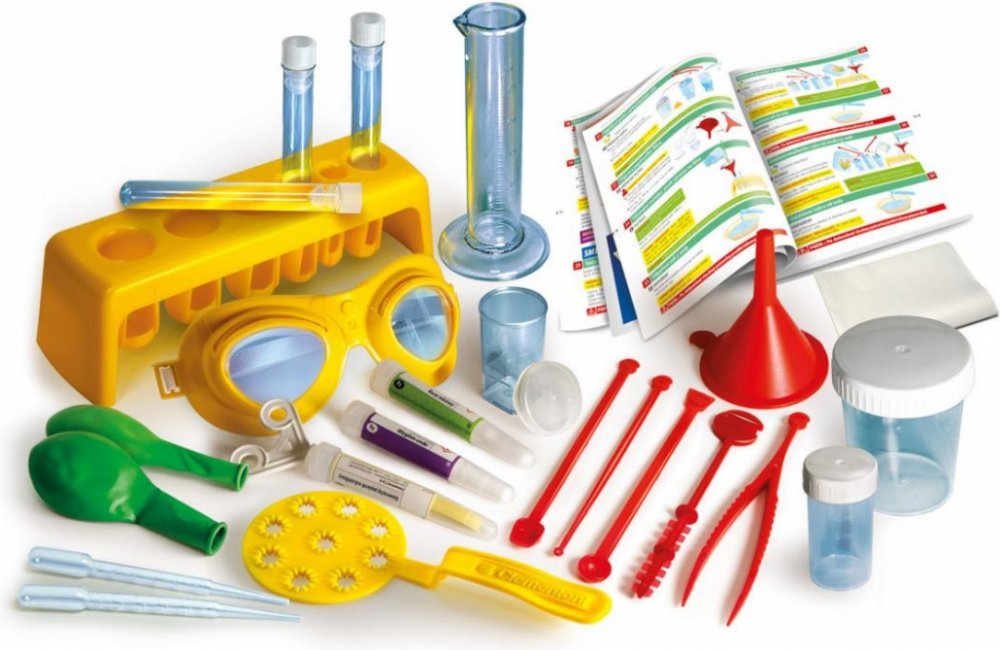 S CLEMENTONI Dětskou laboratoří - Malý chemik lze provádět 150 bezpečnýchpokusů díky ilustrovanému manuálu a bohaté sadě vědeckých přístrojů. Vyzkoušejte pokusy s každodenními i chemickými látkami. Sada pomáhá rozvíjet manuální dovednost a kreativitu. Rozměr balení: 45,1 31,1 7 cm.