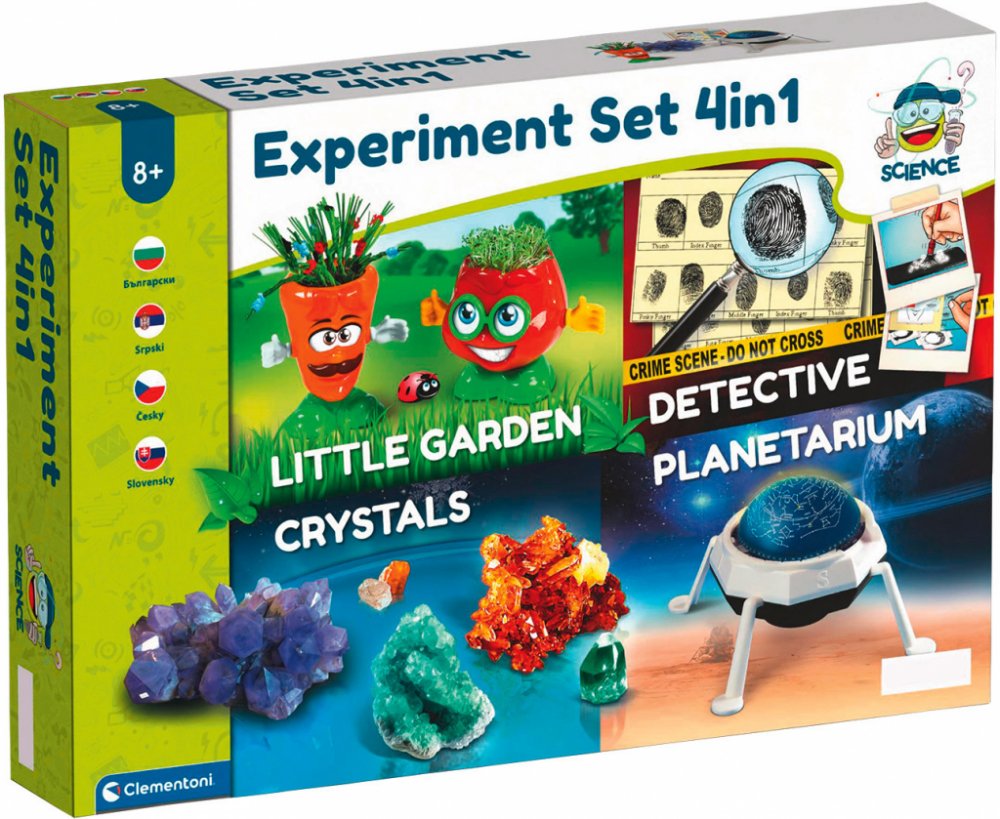 Clementoni Vědecká sada XXL Sada na pokusy 4 v 1 Sada s mnoha aktivitami na objevování z oblastí botaniky, astronomie, detektivní práce nebo krystalů Pěstování krystalů: Jedinečná sada pro pěstování nádherných lesklých krystalů Obrázková příručka obsahuje mnoho užitečných rad pro pěstování a uskladnění krystalů Obsah balení: 3 sáčky síranu draselno-hlinitého (kamence), 100 ml plastová odměrka, malá plastová špachtle ve tvaru lžíce, 1 pár ochranných rukavic, 2 plastové nádobky s bezpečnostním uzávěrem, klíč na bezpečnostní zámek, obrázkový návod na všechny pokusy Moje zahrada: Souprava, která dětem přiblíží svět botaniky Obsahuje malé květináče, které vypadají jako veselé postavičky Obsah balení: 2 postavičky, jetelová semena, tráva na pastvu, rašelinové tablety, pipeta, špachtle, nálepky na postavičky Detektiv: Experimentální laboratoř pro napínavá detektivní dobrodružství Jednoduchý návod pochopí i děti Obsah balení: lupa, štětec, černá lesklá deska (na otisky prstů), houba na inkoustové otisky prstů, inkoust na otisky prstů, materiál na fantomové obrázky, plastové tlačítko, kolečko na tajné kódy, kartičky se vzorky otisků prstů Planetárium: Děti objevovat zázraky oblohy, hvězdy a souhvězdí, které fascinují lidstvo již od starověku Mapy hvězd v různých ročních obdobích Obsah balení: části planetária, elektrické části: spínací obvod, žárovka, mapa hvězd Doporučený věk: pro děti od 8 let Příroda pod mikroskopem Přenosný mikroskop pro realistické zvětšení max. 600x Souprava obsahuje různé diapozitivy, které můžete pozorovat Bohatě ilustrovaný návod Obsah balení: mikroskop, Petriho miska, odměrka s víkem, plastové zkumavky se zátkami, lupa, malá ampule, rezervní lampa, pinzeta, malá tyčinka na míchání, špachtle, pipety, hotová plastová sklíčka, plastová sklíčka na přípravu, ilustrovaný návod Doporučený věk: pro děti od 9 let Lidské tělo 3D model lidského těla; 1x kostra s vnitřními orgány z plastu, ilustrovaný návod Doporučený věk: pro děti od 8 let Slizová laboratoř Vzrušující experimenty se slizem v různých verzích Obsah balení: 1x pracovní základna; 1x odměrka; 1x mixér; 1x sada samolepek; 1x odměrka; 1x pipeta; 1x špachtle; 1x lepidlo; 1x roztok aktivátoru; 1x žluté a modré barvivo; 1x barevné třpytky; 1x plastové zkumavky s uzávěrem; ilustrovaný návod Doporučený věk: pro děti od 8 let Materiál Karton, plast, chemické látky Rozměry cca 45 x 31,1 x 7 cm Hmotnost Sada na pokusy 4 v 1: cca 1,3 kg Příroda pod mikroskopem: cca 1,2 kg Lidské tělo: cca 970 g Slizová laboratoř: cca 1,28 kg Upozornění Sada na pokusy 4 v 1 Nevhodné pro děti do 8 let. Používejte pod dohledem dospělé osoby. Obsahuje některé zdraví škodlivé chemikálie. Před použitím si přečtěte pokyny, dodržujte je a mějte je po ruce pro budoucí použití. Nedotýkejte se chemikálií žádné části těla, zejména úst a očí. Při experimentování držte malé děti a zvířata mimo dosah. Uchovávejte experimentální sadu mimo dosah dětí mladších 8 let. Ochrana očí pro dohlížející dospělé není součástí dodávky. Příroda pod mikroskopem Nevhodné pro děti do 36 měsíců. Obsahuje malé části, které lze spolknout nebo vdechnout. Nebezpečí udušení. Nikdy se nedívejte do slunce objektivem přístroje, mohlo by dojít k trvalému poškození zraku. Z důvodu zvýšeného nebezpečí požáru nesmí být lupa vystavena přímému slunečnímu záření.