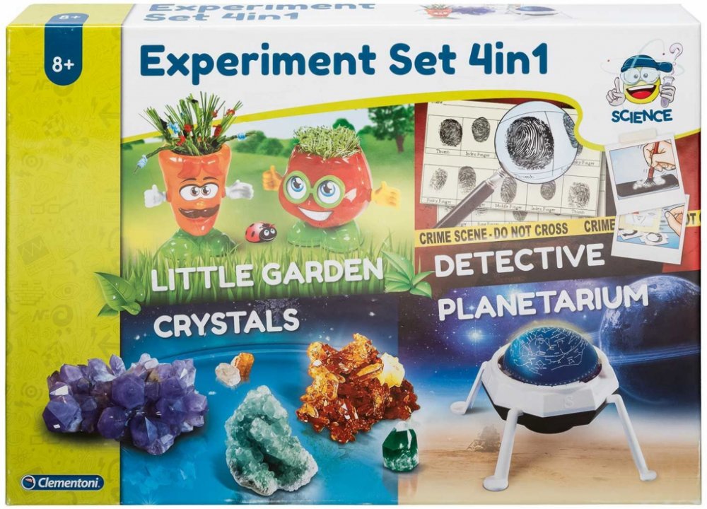 Clementoni Vědecká sada XXL Sada na pokusy 4 v 1 Sada s mnoha aktivitami na objevování z oblastí botaniky, astronomie, detektivní práce nebo krystalů Pěstování krystalů: Jedinečná sada pro pěstování nádherných lesklých krystalů Obrázková příručka obsahuje mnoho užitečných rad pro pěstování a uskladnění krystalů Obsah balení: 3 sáčky síranu draselno-hlinitého (kamence), 100 ml plastová odměrka, mal...