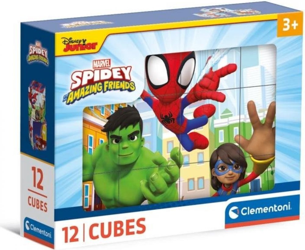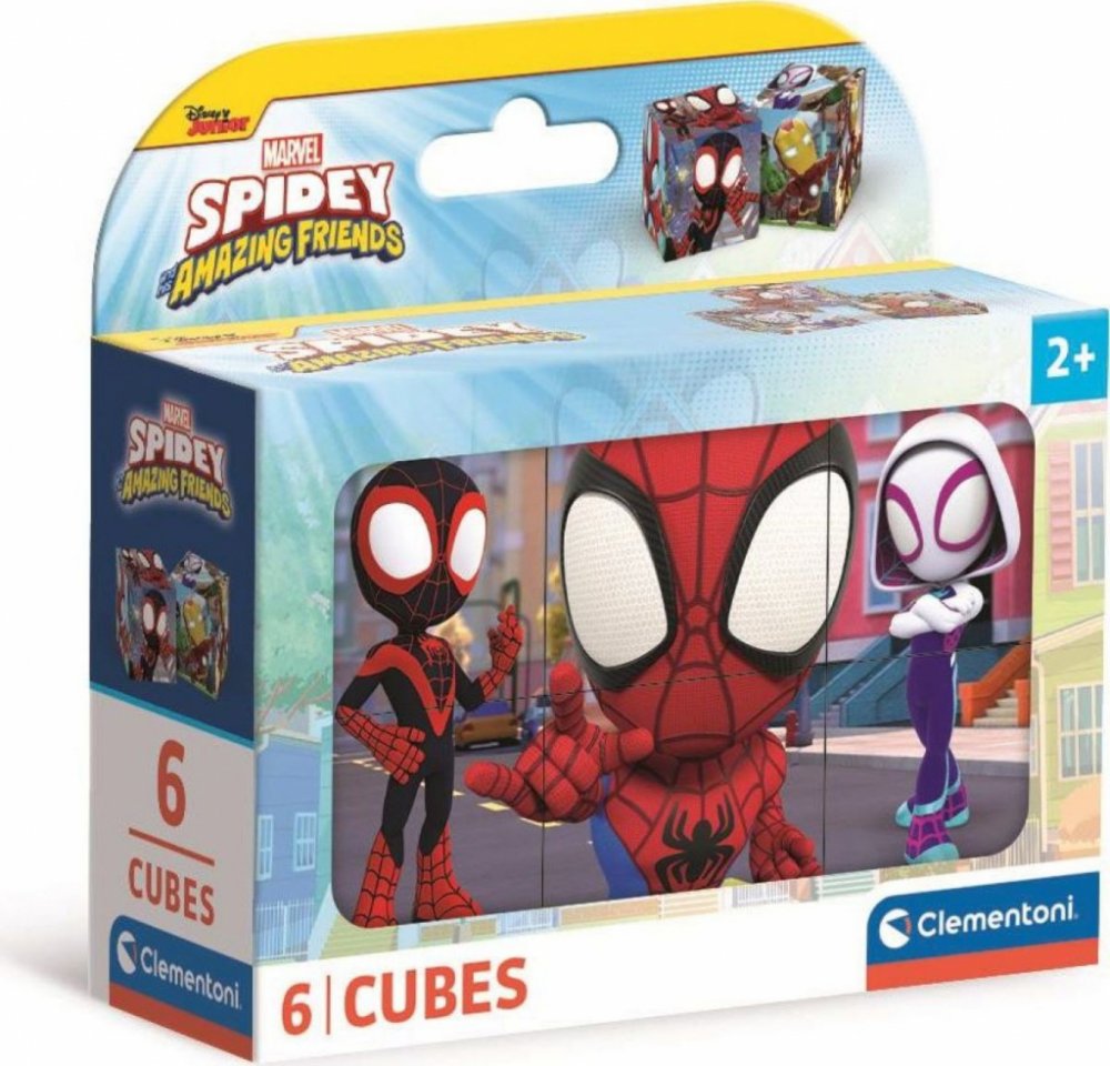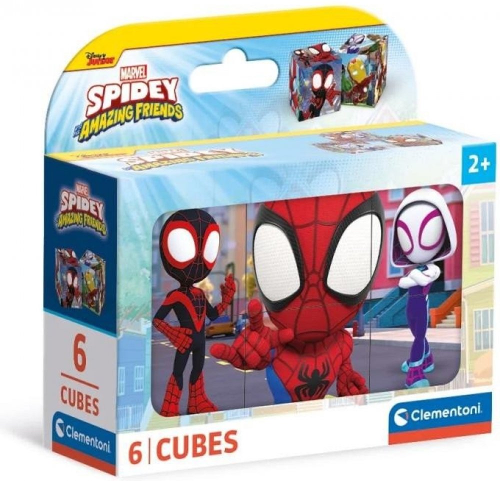 Clementoni - Obrázkové kostky - Spidey a jeho úžasní přátelé 6 kostek. Obrázkové kostky podporují u nejmenších dětí koordinaci a motoriku při bourání a stavění komínů, napomáhají chápání příčiny a následku. U starších dětí při skládání obrázků rozvíjí fantazii, orientaci a logické myšlení a motivují k vyprávění příběhů. Rozměr
