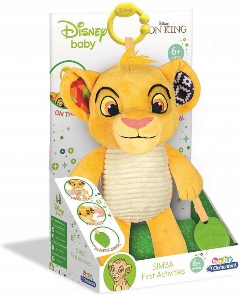 Okouzlující plyšák Lví král se základními aktivitami, speciálně navržená pro nejmenší děti, s pestrými barvami, které stimulují zájem a zrak. Měkké, škrábavé ouška, chrastítko, bříško a ohebné nožičky pomáhají dítěti rozvíjet smyslové dovednosti. Nohy jsou ohebné a díky kroužku lze plyšovou hračku snadno zavěsit na kočárek.