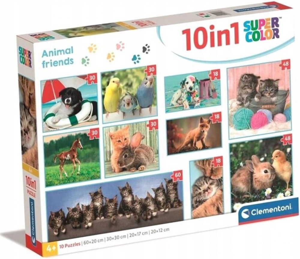 Puzzle Clementoni je určeno pro děti od 4 let. Obsahuje celkem 330 dílků. Balení je tvořeno kombinací deseti motivů. Klíčové vlastnosti produktu CLEMENTONI Zvířecí kamarádi 10v1 Puzzle Clementoni je vhodné pro děti od 4 let Obsahuje dohromady 330 dílků Deset motivů v jednom balení Jeho rozměry činí 20 × 60 cm (vך) Materiál: papír