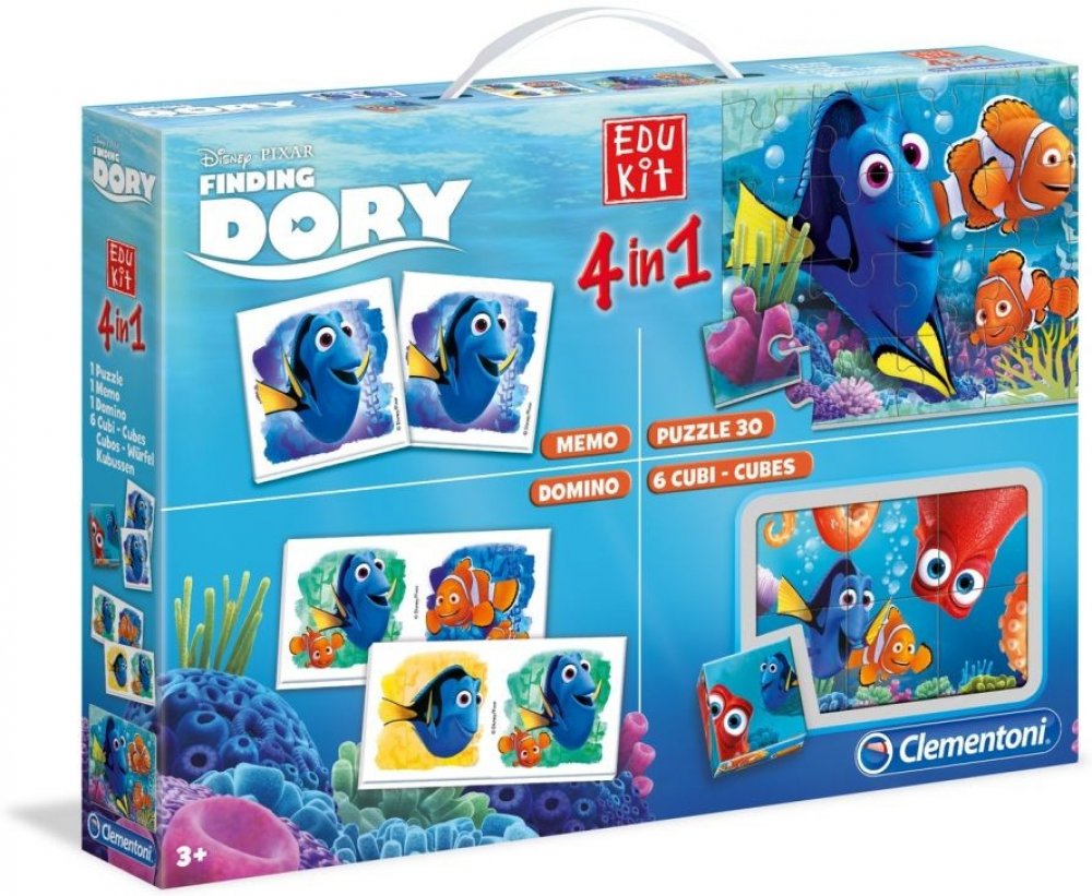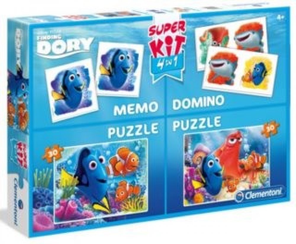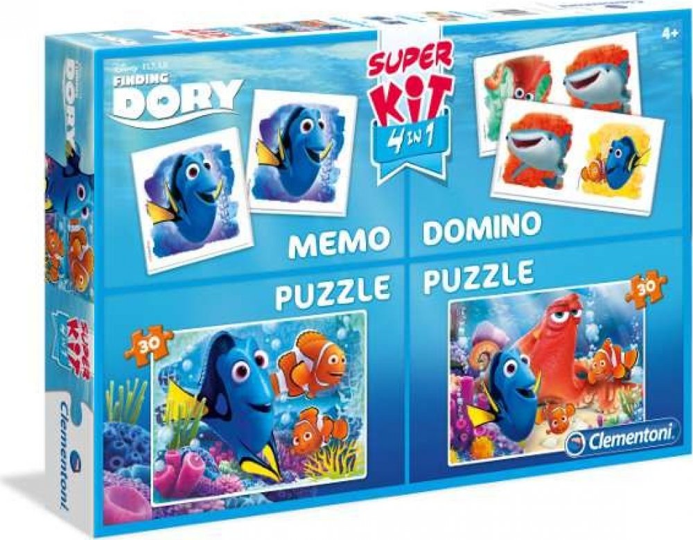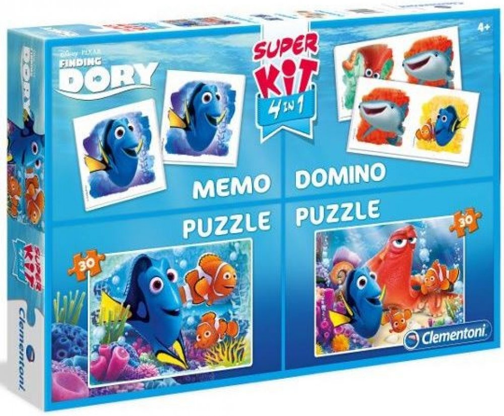 Superkit 4v1 Hledá se Dory - soubor her (2x puzzle s 30 dílky, hry pexeso a domino), CLEMENTONI 08213