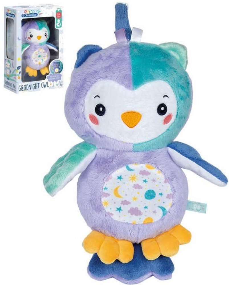 S uspávací sovičkou Clementoni snáze uklidníte své miminko a ukolébáte ho ke spánku. Po stisknutí bříška plyšové hračky se rozsvítí jemné a tlumené světlo, které poskytne děťátku pocit bezpečí. Lépe zvládne strach ze tmy a usne. Sovička zároveň hraje příjemné melodie.