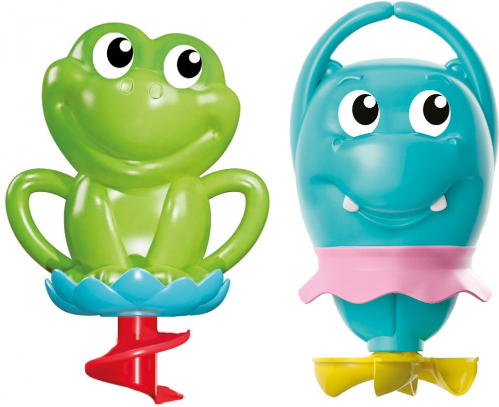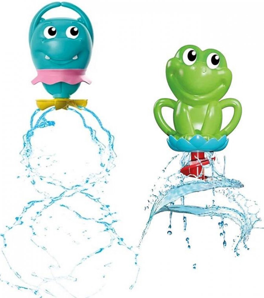 Jakmile se žába i hroch naplní vodou, vytvoří se díky odtokovému otvoru u základny postaviček různé šplouchající efekty podobné fontáně, které děti ohromí.