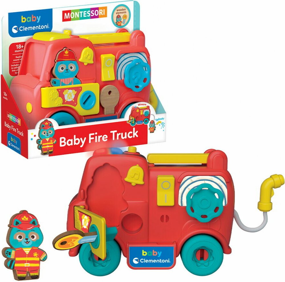 Hasičské auto obsahuje dřevěné součástky, které jsou navrženy ve stylu Montessori tabule a bedničky s uzávěrem. Lze jej použít společně s Clementoni: Montessori domečkem pro panenky, což ještě více obohacuje herní zážitek.