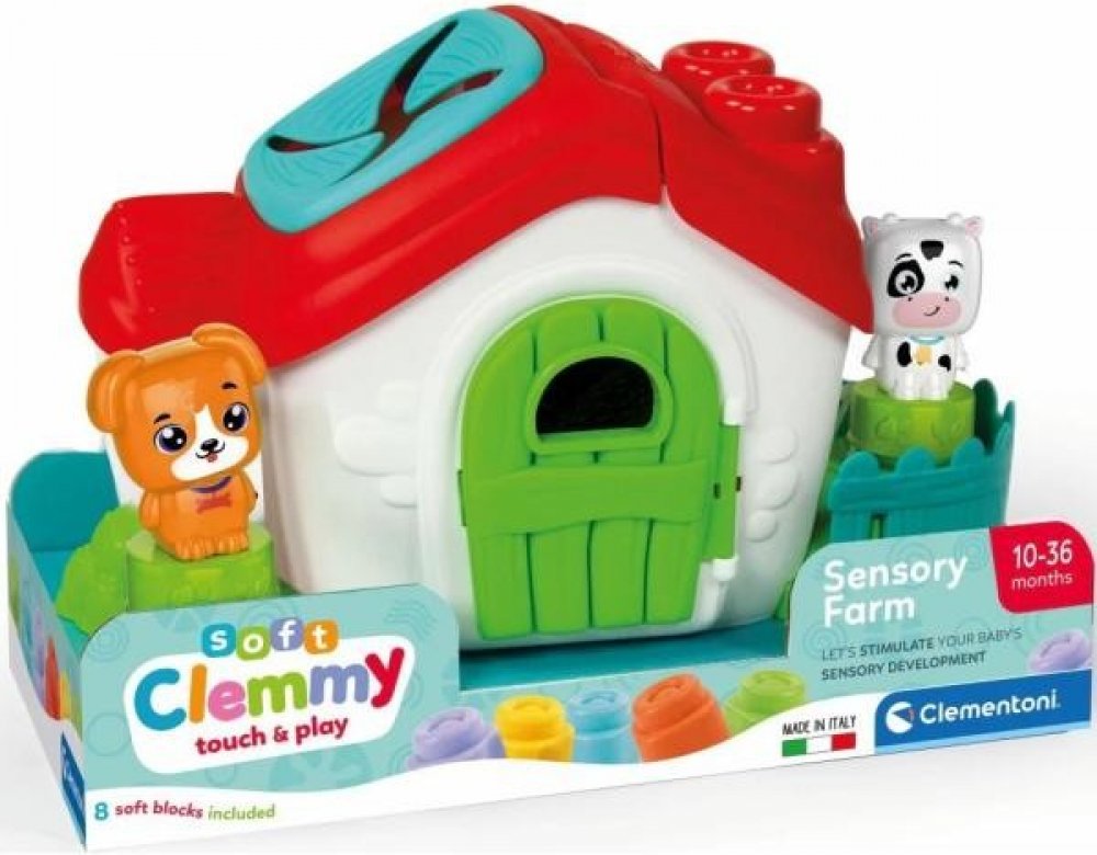 Balení obsahuje: Domeček-farmu s odklápěcí střechou, 8 měkkých kostek Clemmy. POZNÁMKA: Kostičky lze používat i při hraní ve vodě, dají se mýt v myčce. Značka BABY CLEMENTONI je synonymem kreativity, nadšení a důrazu na kvalitu. Hračky pomáhají rodičům při komunikaci s dítětem. Vzhled hračky a její inovativní barvy, netoxické a pevné materiály, vytvarovaný povrch a různé funkce pomáhají při rozvoji hmatových a sluchových schopností, napomáhají pohybové aktivitě a vyvolávají první logické asociace. Z výrobků firmy jsou na českém trhu oblíbené zejména CLEMMY kostky, které jsou vyrobeny z měkké netoxické gumy. Ta je zároveň snadno omyvatelná a má lehkou vanilkovou vůni.