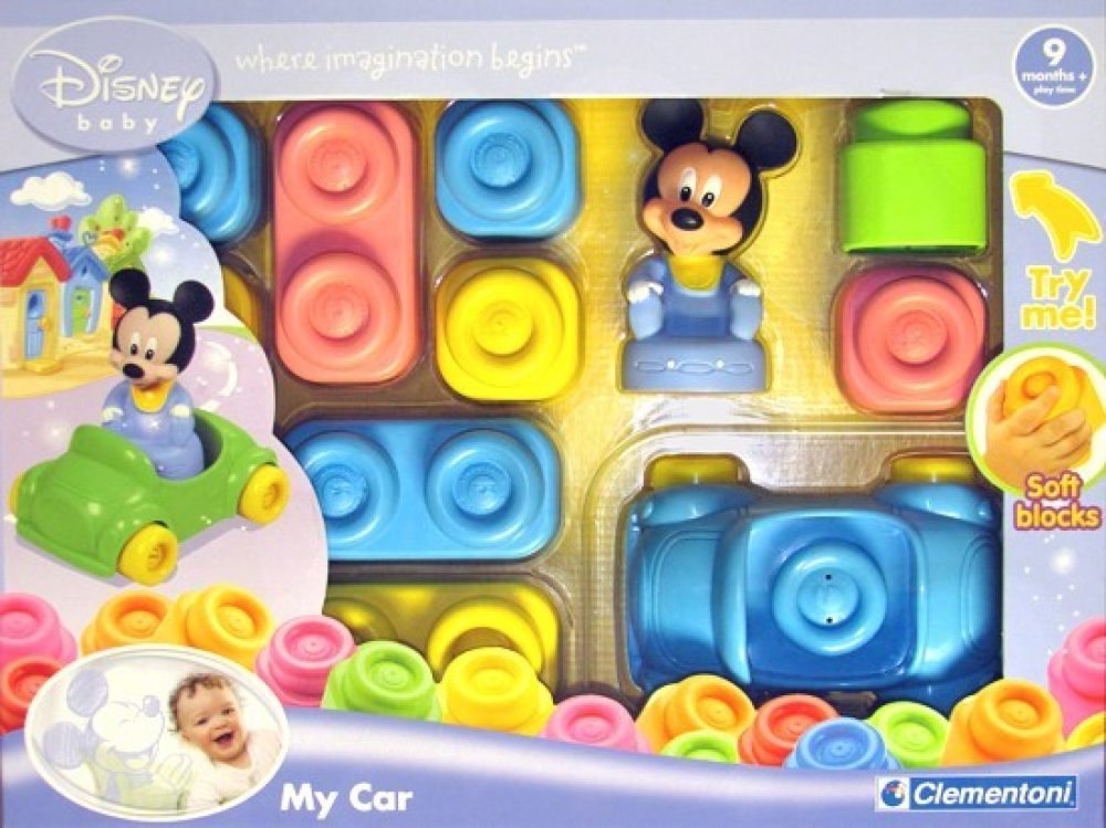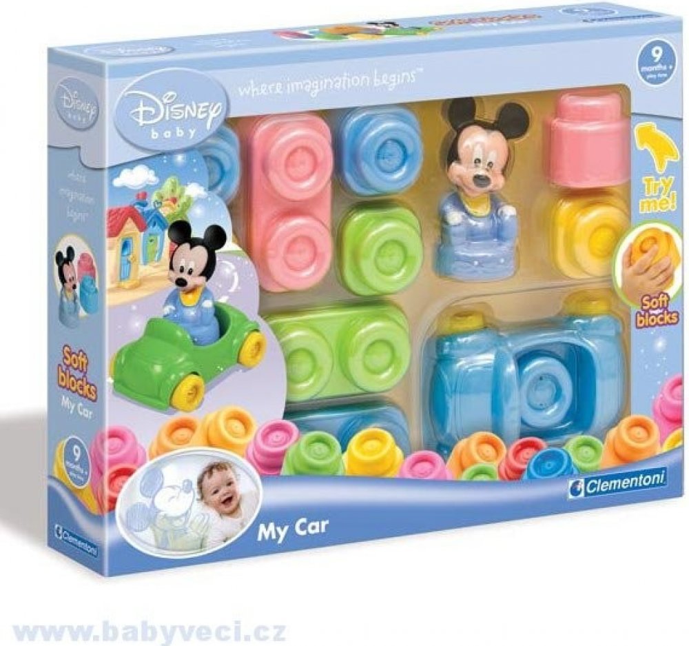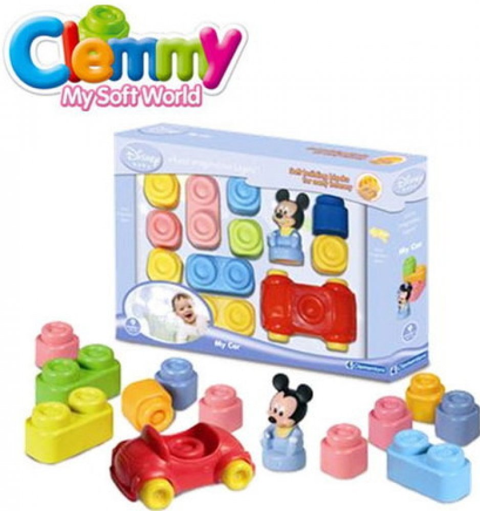 Clemmy Disney Baby měkké kostky s postavičkou malého myšáka Mickeyho je príma první stavebnice s kostičkami pro děti. Kostky jsou z měkkého netoxického materiálu, lze je snadno omývat a skládat na sebe. Sada obsahuje osm jednoduchých a tři dvojité měkké kostky, postavičku Mickeyho a autíčko.