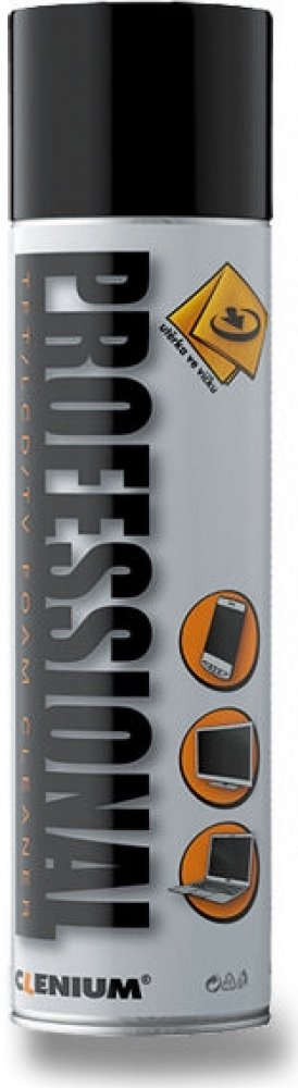 Antistatická čisticí pěna. Bez alkoholu a abraziv. Odstraňuje všechny nečistoty i otisky prstů. Aplikuje se přímo na čištěnou plochu, uvolněná nečistota se odstraní mikroaktivní utěrkou CLENIUM. Antistatický účinek ochraňuje vyčištěné plochy proti dalšímu usazování prachu. Obsah 400 ml.