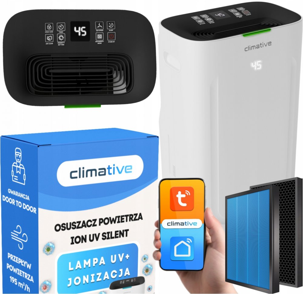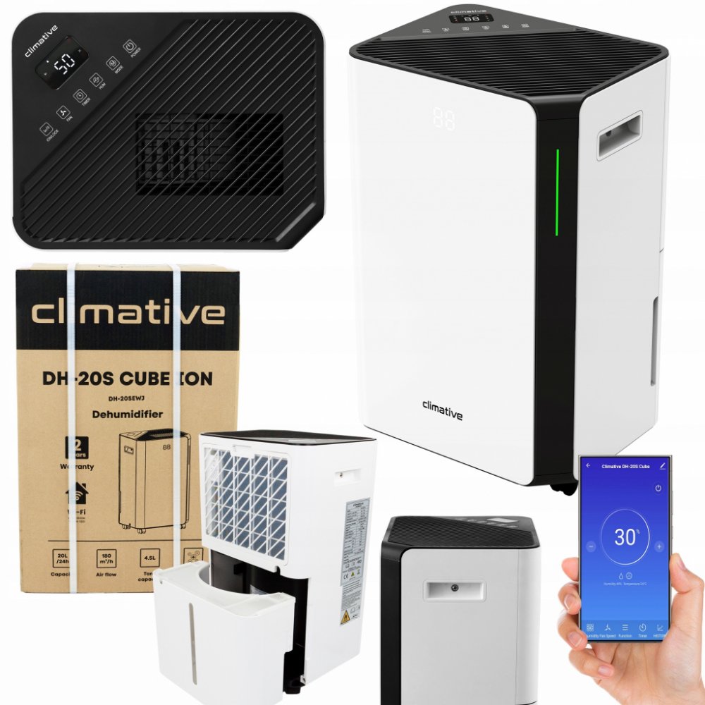 S Climative Cube ION máte plnou kontrolu nad zařízením bez ohledu na to, kde se nacházíte! Díky vestavěnému modulu Wi-Fi a vyhrazené mobilní aplikaci můžete odvlhčovač spravovat odkudkoli na světě – stačí telefon a přístup k internetu. Bez ohledu na to, zda jste na cestách, v práci nebo jen mimo domov, zapněte aplikaci a sledujte provoz zařízení, úroveň vlhkosti nebo naplnění nádrže. Dálkové ovládání vám zajistí naprosté pohodlí a ušetří čas.