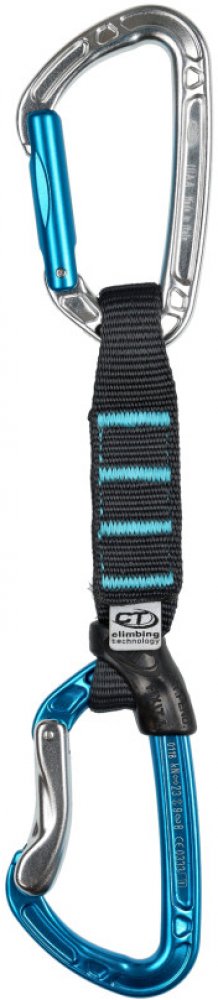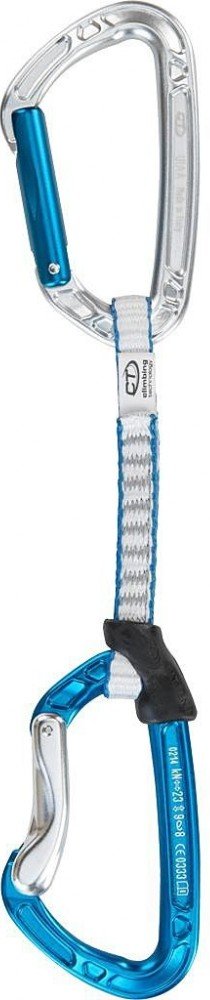 Vrchní karabina s drážkami pro snadnější úchop, spodní karabina s kovaným zámkem pro snadnější otevření a vložení lana. Karabiny kované za horka spojené ultralehkou dyneemovou smyčkou o šířce 11mm, spodní karabinu drží ve správné poloze nová revoluční gumička FIXIT