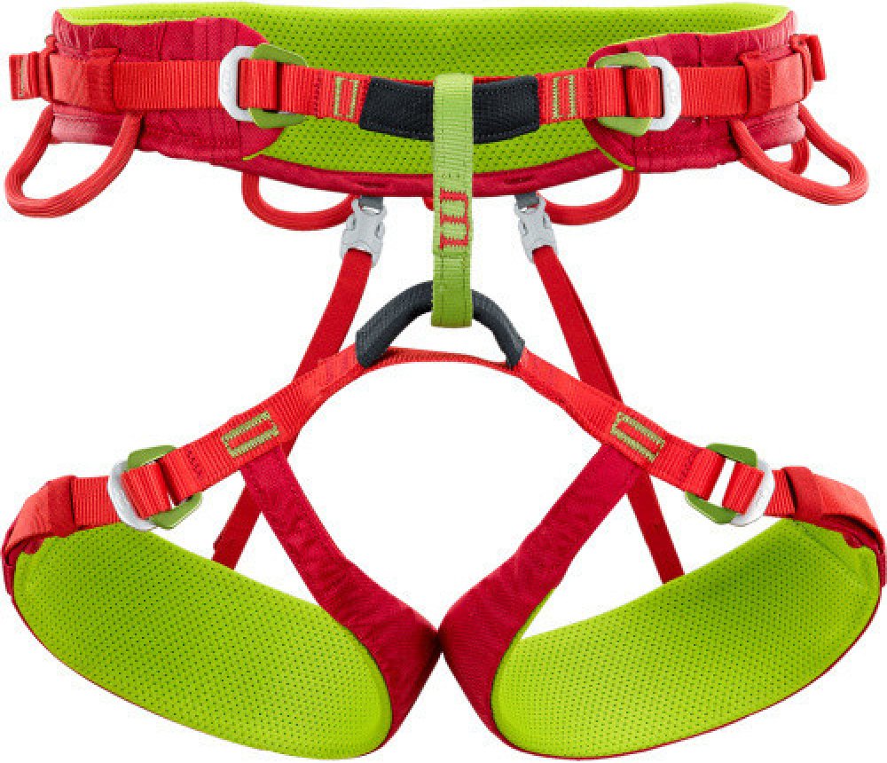 Vybaven čtyřmi nastavitelnými přezkami z lehké slitiny pro rychlé nastavení a optimální přizpůsobení tělu při různých aktivitách (horolezectví, alpinismus, lezení ledů atd.).