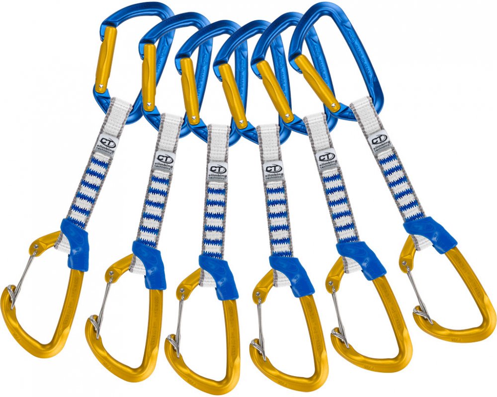 Climbing Technology Berry Set DY 12 cm 6-pack lezecké expresky jsou ultralehkou nabídkou, kterou ocení i ti nejnáročnější uživatelé. Kolekce Berry kombinuje osvědčené technologie v expanderu využívajícím ultralehkou dyneema pásku a dvě karabiny s bezzubými zámky, které obstojí při každém lezeckém úkolu. Návrh italského výrobce se osvědčí nejen na sportovních tratích. Díky nízké hmotnosti a drátěným zámkům na spodní karabině jsou vhodné i pro lezení v náročném horském terénu, kde je důležitá hmotnost vybavení neseného na úvazku.Na první pohled jsou expedice matoucím způsobem podobné známým a osvědčeným modelům LIME. Není to náhoda, protože základní geometrie karabin je téměř totožná. Od ostatních modelů BERRY se odlišují zámky. V případě horní karabiny byl jednoduchý plný zámek "vylepšen" drážkami pro lepší úchop. Drážky pro nejlepší úchop na obou stranách zámku oceníte při obtížných výstupech - všude tam, kde je poloha těla vzdálená klidu a zásoby energie vylučují boj s expresem u postroje. Drážky na zámcích zlepšují přilnavost k prstům, což umožňuje uchopit expresku horní karabinou, s jistotou otevřít zámek, vyjmout jej z lezeckého úvazku a zasunout do lana.Na spodní karabině s ultralehkým "drátěným" zámkem by vás měla zaujmout inovativní povrchová úprava bez ostrých zubů. Patentovaný uzamykací systém FG (Free Gate) je obdobou zámku s klíčem u pevných zámků. Uzavírá prohlubeň v karabině, takže případný zaháknutý předmět hladce vyklouzne ze zámku. Zatímco samotné lano je dostatečně silné, aby s ním obvykle nebyly žádné takové problémy, "bezzubý" zámek je ideální pro upínání tenčích smyček, lan a popruhů. Dvě karabiny, které tvoří každou z lezeckých expresek v sadě CT Berry Set DY 12 cm, jsou vyrobeny z lehkých slitin metodou kování za tepla. Díky tomu se každý z nich vyznačuje vysokou pevností a propracovanou geometrií. Barevné eloxování (modrá a žlutá) plní kromě své ryze dekorativní funkce tři základní úkoly: usnadňuje kontrolu opotřebení karabin a rychlost jejich opotřebení, umožňuje snadnou lokalizaci vybavení na stěně (stačí se před odchodem z místa podívat na skálu, zda je vše posbíráno a zabaleno) a pomáhá rozlišit exponáty v situacích, kdy si s partnerem nebo týmem pletete vybavení při lezení různých cest.Climbing Technology Berry Set DY 12 cm lezecké exponáty jsou spojeny 11 mm širokou páskou z dyneema vláken. Jedná se o nejlehčí variantu, která umožňuje zavěšení sady v pase s menší hmotností. Pásky pro expresy DY mají nejnižší možnou hmotnost a v krátké verzi 12 cm také nejkratší lety.Tyto expresky jsou také vybaveny inovativními řemínky Fixit. Jedná se o řešení patentované společností CT, které bylo vyvinuto pro stabilizaci karabiny, ale s nejlepší možnou kontrolou správnosti montáže a absolutní jistotou, že celá věc nemůže být sestavena nesprávně. Fixit udržuje spodní karabinu ve správné poloze, což usnadňuje a urychluje připnutí lana. Má také pozitivní vliv na pevnost popruhu a chrání ho před možným oděrem. Především umožňuje na první pohled zjistit, zda je karabina expandéru vedena očkem pásky. Climbing Technology Berry Set DY 12 cm 6-pack exponentů - klíčové vlastnosti:Skládá se z karabin Climbing Technology Berry a 12 cm stuh dyneema;Karabiny vyrobené metodou kování za tepla;Horní karabina má přímý zámek se speciálním profilováním pro snadné uvolnění z postroje a připnutí do via;Bezzubá povrchová úprava Catch-Free;Spodní karabina je vybavena ultralehkým drátěným zámkem;Patentovaný systém Free Gate, který "zasouvá" zub zámku;Popruh Dyneema o minimální šířce 11 mm;Inovativní šňůrka Fixit pro udržení karabiny ve správné poloze;Sada obsahuje 6 expresů;Evropská výroba - 100 % made in Italy;Karabiny: CE 0333, EN 12275:2013-B, UIAA.