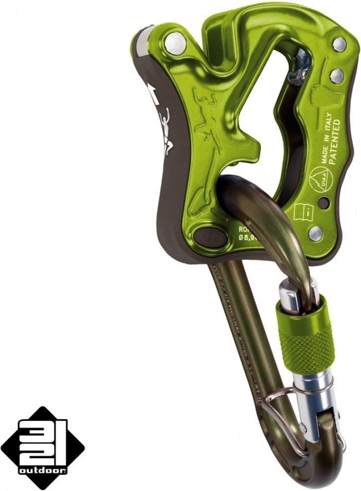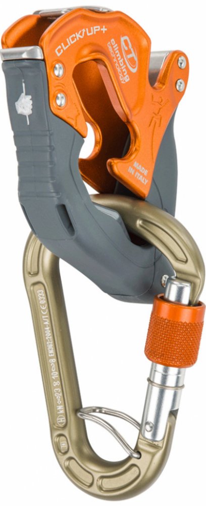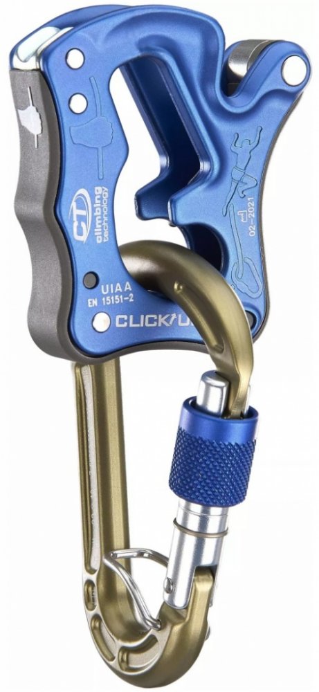 CLICK UP se dodává a musí se používat společně se specifickou HMS karabinou CONCEPT SGL HC s eloxováním odolným proti opotřebení a systémem ACL (ocelovým pérkem zabraňujícím přetáčení karabiny), který zabraňuje možnosti protočení karabiny a případnému přetížení její vedlejší osy.