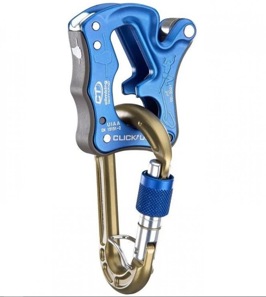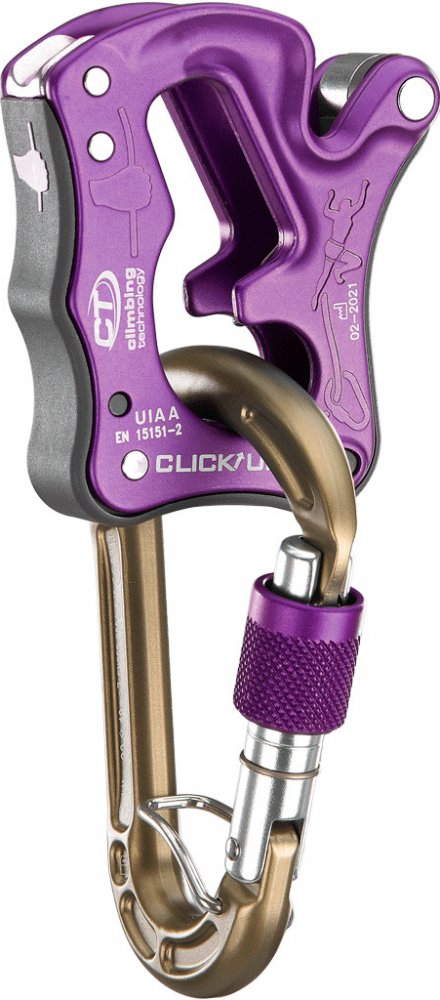 - CLICK UP je jediné jistítko na trhu, které zachytí pád lezce i v případě, že lano je vloženo opačně! V tomto případě CLICK UP nefunguje jako poloautomatické jistítko, ale jako klasický jistící kyblík díky drážkám ve tvaru V pro zvýšení brzdného účinku.