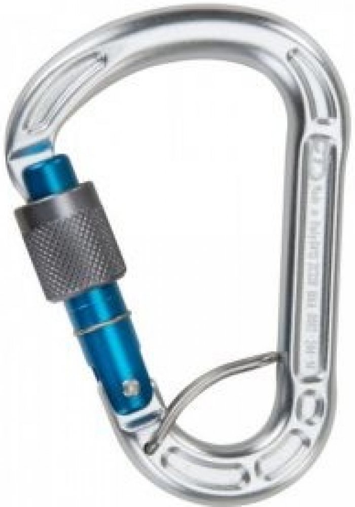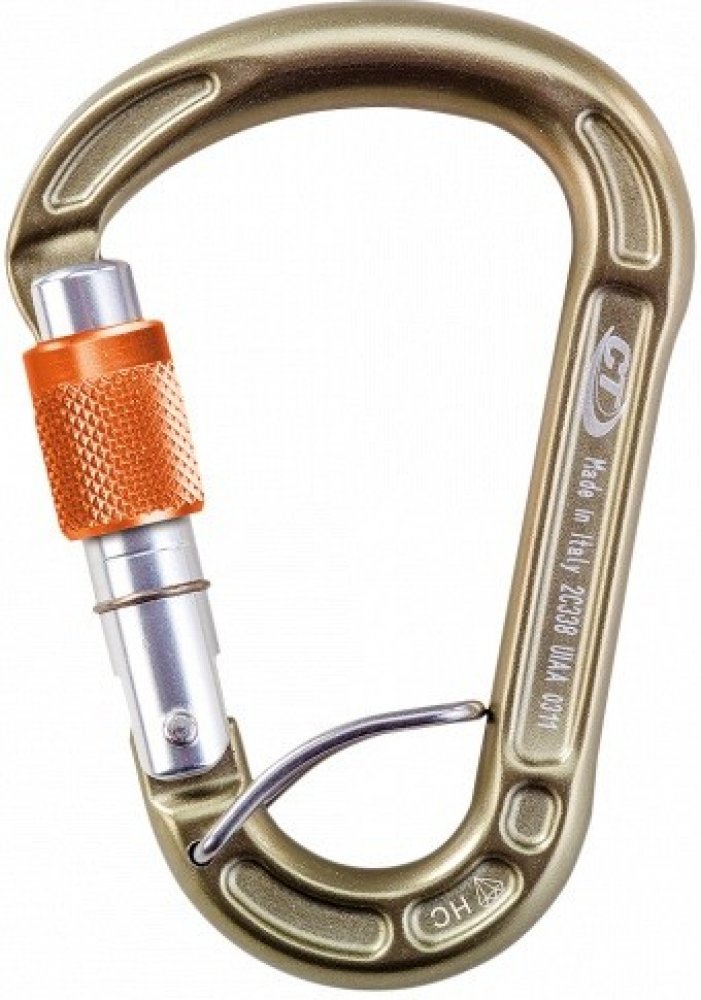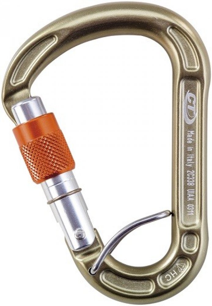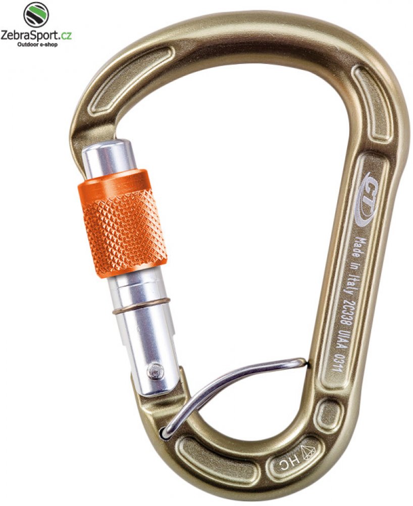 ALU karabina HMS se šroubovací pojistkou a pružinkou proti přetočení v navazovacím oku sedáku ACL.