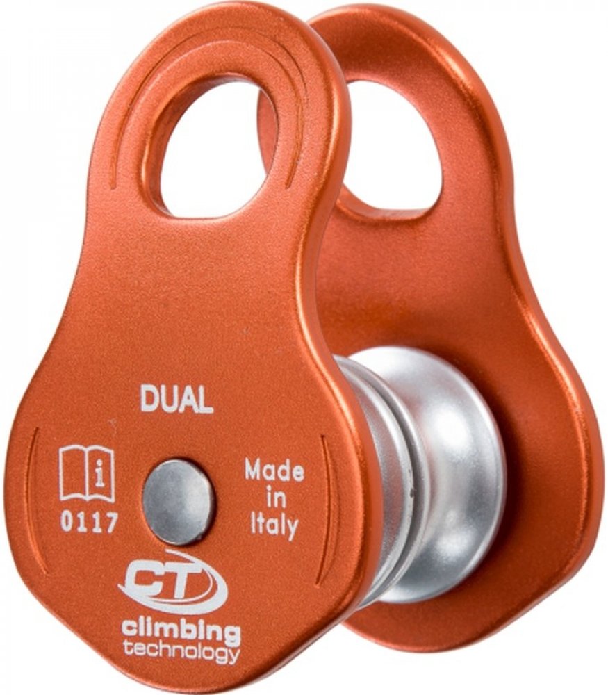 Inovativní dvojitá kladka Climbing Technology Dual s volnými bočnicemi. Vyznačuje se kompaktními rozměry a slušnou nosností. Určena je především pro arboristiku, pro vytvoření menších lanových kadkostojů, pro manipulaci s břemeny, ale také pro evakuaci osob.