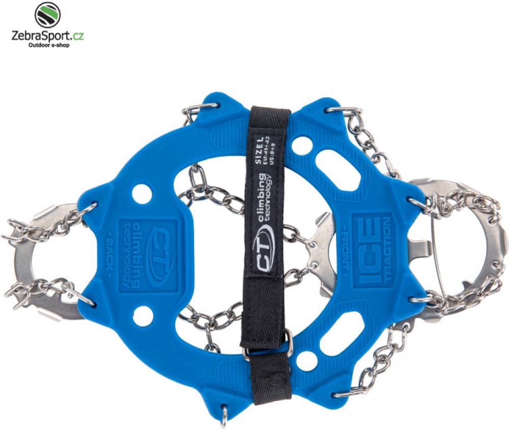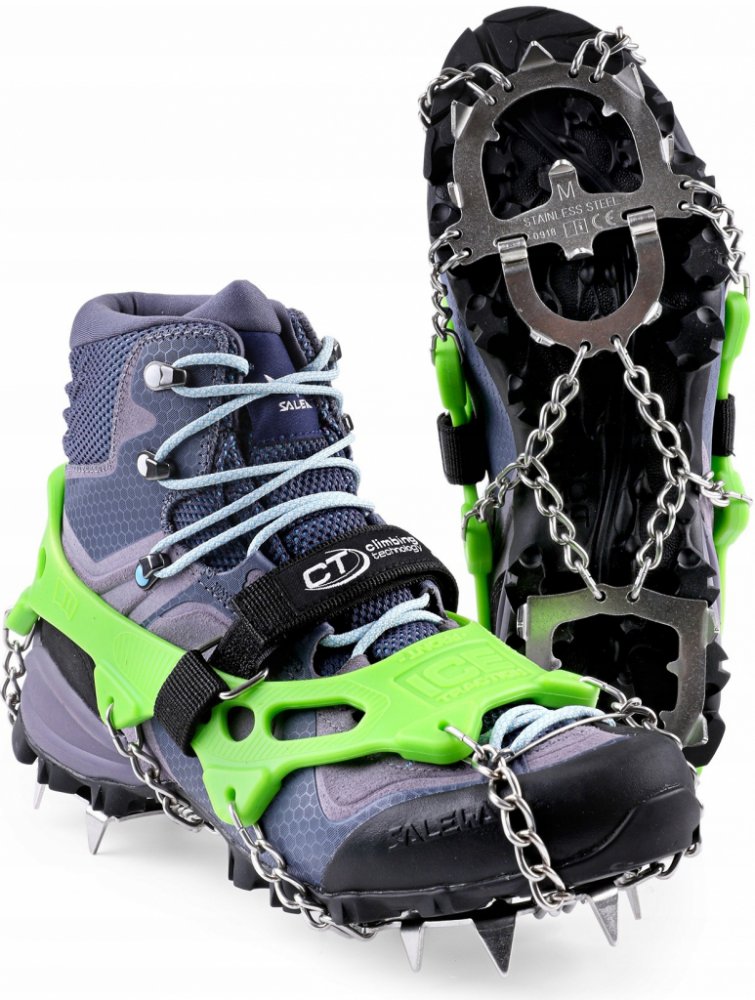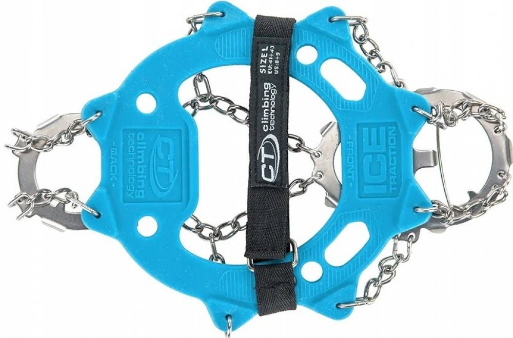 Climbing Technology ICE TRACTION+ jsou kapesní turistické nesmeky, které zabraňují pádu na ledu. Ocelové hroty, silikonový límec a transportní obal.