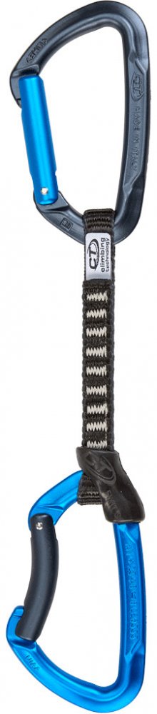 Climbing Technology Lime B Set DY 17 cm Climbing Express - antracit/modrá mořská je model, který bude stejně dobře fungovat v rukou pokročilých i začínajících lezců. Jedná se o výrobek s vynikajícím poměrem pevnosti a hmotnosti.Climbing Technology Lime B Set DY 17 cm - anthracite/blue marine Climbing Express se skládá z dyneema popruhu a dvou karabin z řady Lime. Horní karabina je Lime S, která se vyznačuje plným, rovným zámkem. Spodní je karabina Lime B vybavená ohnutým zámkem se systémem Catch-Free, který zabraňuje nepříjemnému zaháknutí nosu o lano, jistítka nebo popruh. Spodní karabina je navíc vybavena gumovým stabilizátorem - Fixitem, který zabraňuje kroucení karabiny, což výrazně ovlivňuje rychlost a kvalitu upínání. Použité karabiny byly vyrobeny technologií kování za tepla z lehkých hliníkových slitin, což v kombinaci s lehkou páskou Dyneema umožnilo snížit hmotnost celku, což jistě ocení milovníci minimalismu ve skále. Celek bude ideální pro vedení sportovních cest nebo cest s více lany.Climbing Technology Lime B Set DY 17 cm - antracit/modrá mořská - klíčové vlastnosti:Model je skvělý pro bodové i tradiční lezení;Dyneema popruh;Délka popruhu: 17 cm;Horní karabina Lime S;Spodní karabina Lime B;Spodní karabina s bezzubým zakončením Catch-Free;Spodní karabina se stabilizátorem Fixit;Karabiny jsou certifikovány: CE; EN 12275:2013-B; UIAA;Popruhy jsou certifikovány: CE; EN 566:2017; UIAA;Pevnost popruhu: 22 kN.