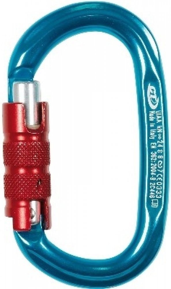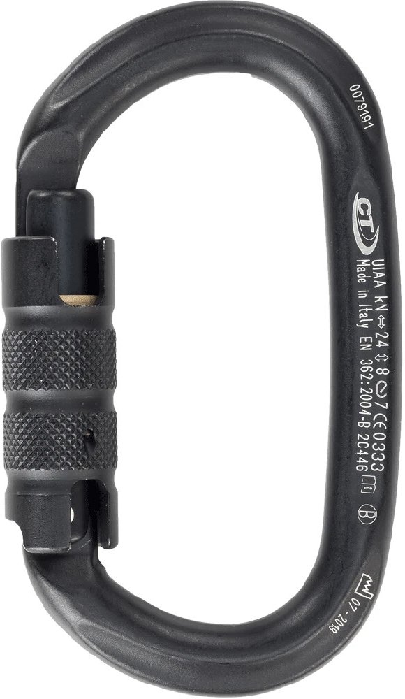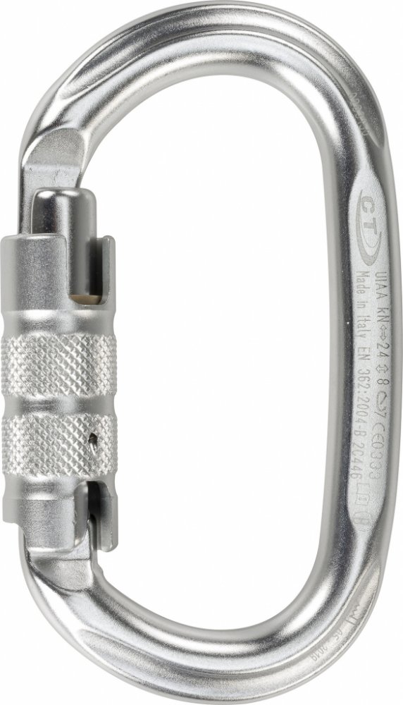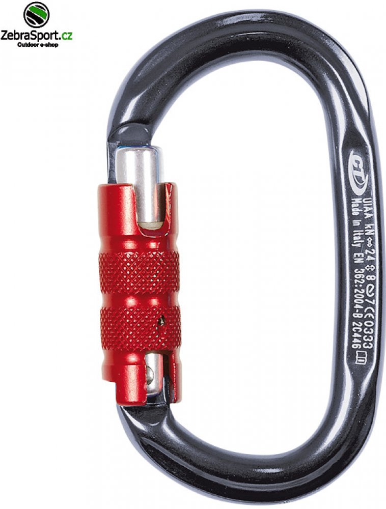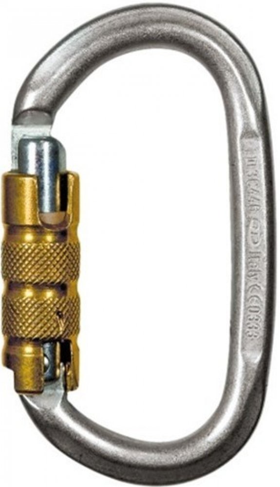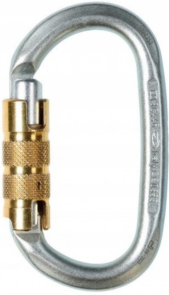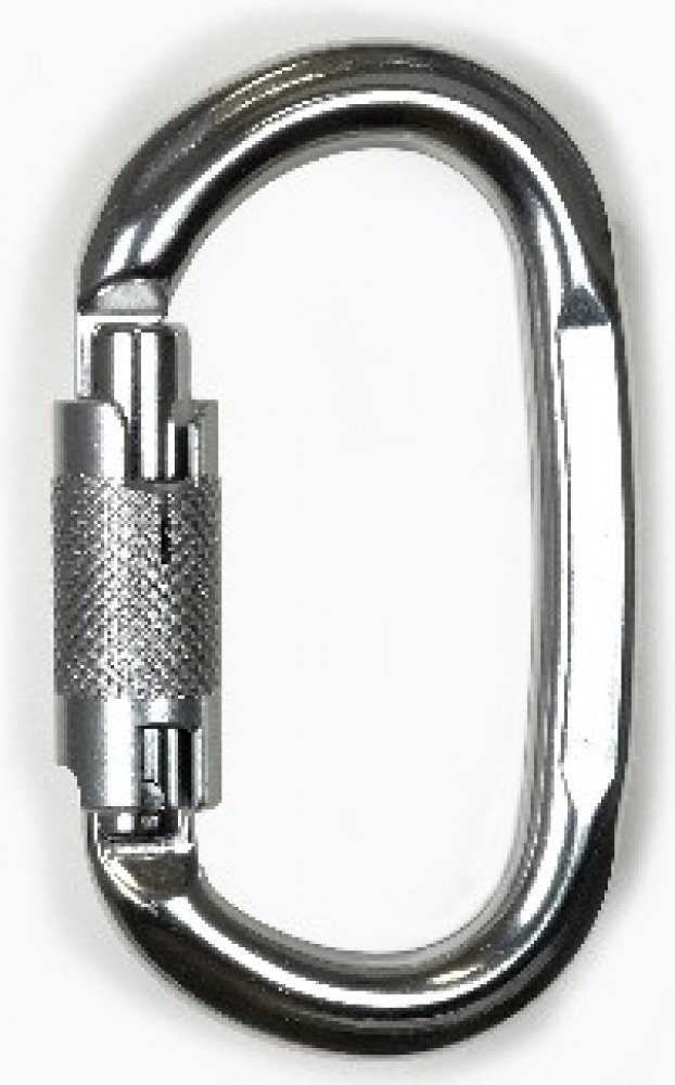 Oválná karabina s trojčinným zámkem vhodná pro připojení kladek.