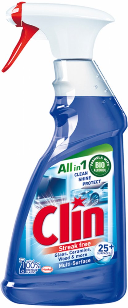 Čistič oken CLIN Multishine vám zajistí hygienicky čistou domácnost. Tento multifunkční přípravek rychle a efektivně odstraňuje nečistotu a můžete jej použít na téměř jakýkoli povrch od skla či plasty až do oceli, nebo dokonce kůži. Díky speciální receptuře lze CLIN na okna Multi-Shine používat i na choulostivé povrchy, jako je televizní obrazovka, stereo souprava nebo pracovní deska z přírodního dřeva či mramoru. Nepřekonatelný pěnový rozprašovač umožňuje jednoduchou aplikaci na příslušné místo. Následně stačí jen jemně setřít hadříkem a výsledkem bude zářivě lesklý a čistý povrch bez šmouh.
