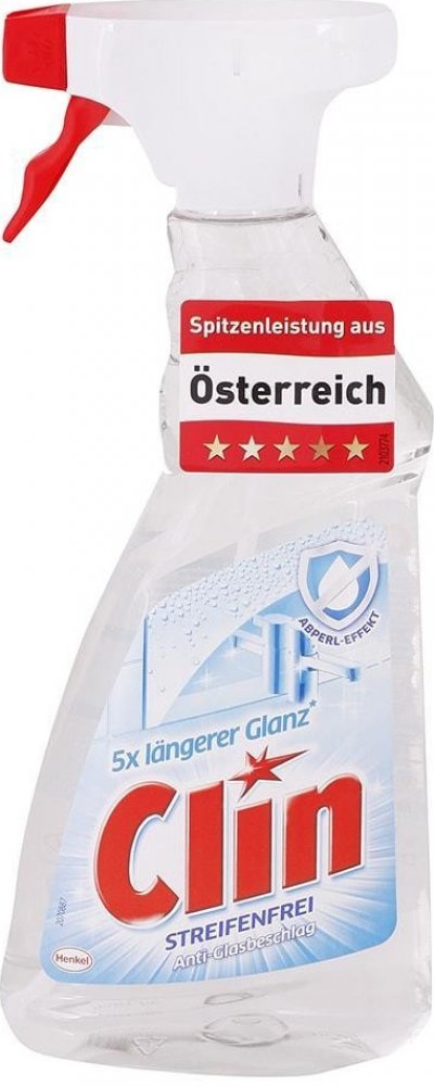 Clin Antifog čistič skel pro zářivě čistá okna a zrcadla beze šmouh s odmlžovacím účinkem! Čisticí prostředky Clin zajišťují profesionální čištění oken a skleněných povrchů beze šmouh bez dalšího leštění!