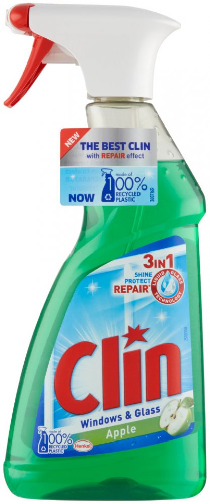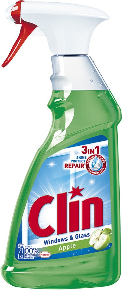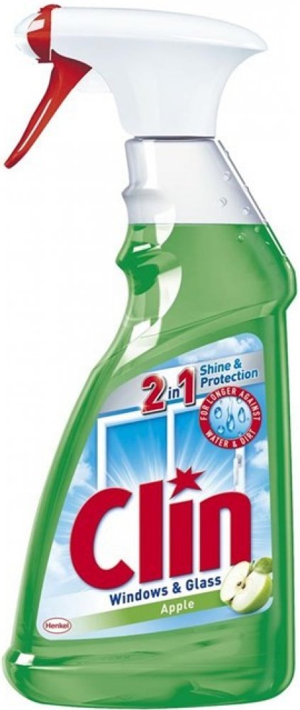 Clin na okna Apple, čistič oken a skla. Pro čištění a lesk skleněných a hladkých omyvatelných ploch (např. sklo, zrcadla, TV obrazovky, skleněné stoly atd). Patentovaná hydraulická pistole umožňuje nanášet prostředek ve formě aktivní stabilní pěny přímo na čištěné místo, kde se déle udrží na povrchu, nestéká a díky tomu působí na nečistoty delší dobu. Pistole dále umožňuje rozptýlení produktu ve formě spreje (odklopením sítka z konce pistole), a tím ošetří větší plochu. Pistole je zároveň velmi praktická a nabízí dokonale pohodlný úklid.