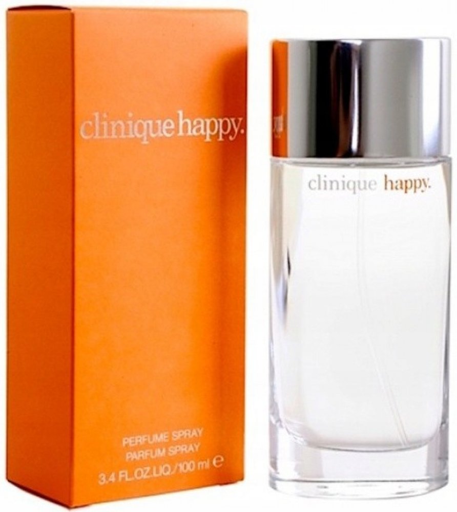 Clinique 100 ml dámské parfémované vody květinové pro denní nošení Happy 1998 z Francie mainstreamové bergamot, červený grapefruit, jablko, mandarinka, pomeranč, švestka frézie, konvalinka, orchidej, růže ambra, magnólie, mimóza, pižmo se střední projekcí jarní kompatibilní s jablkem, s červeným grapefruitem, s růží Coty klasické TSA kompatibilní (≤100ml) rozprašovač 335 g
