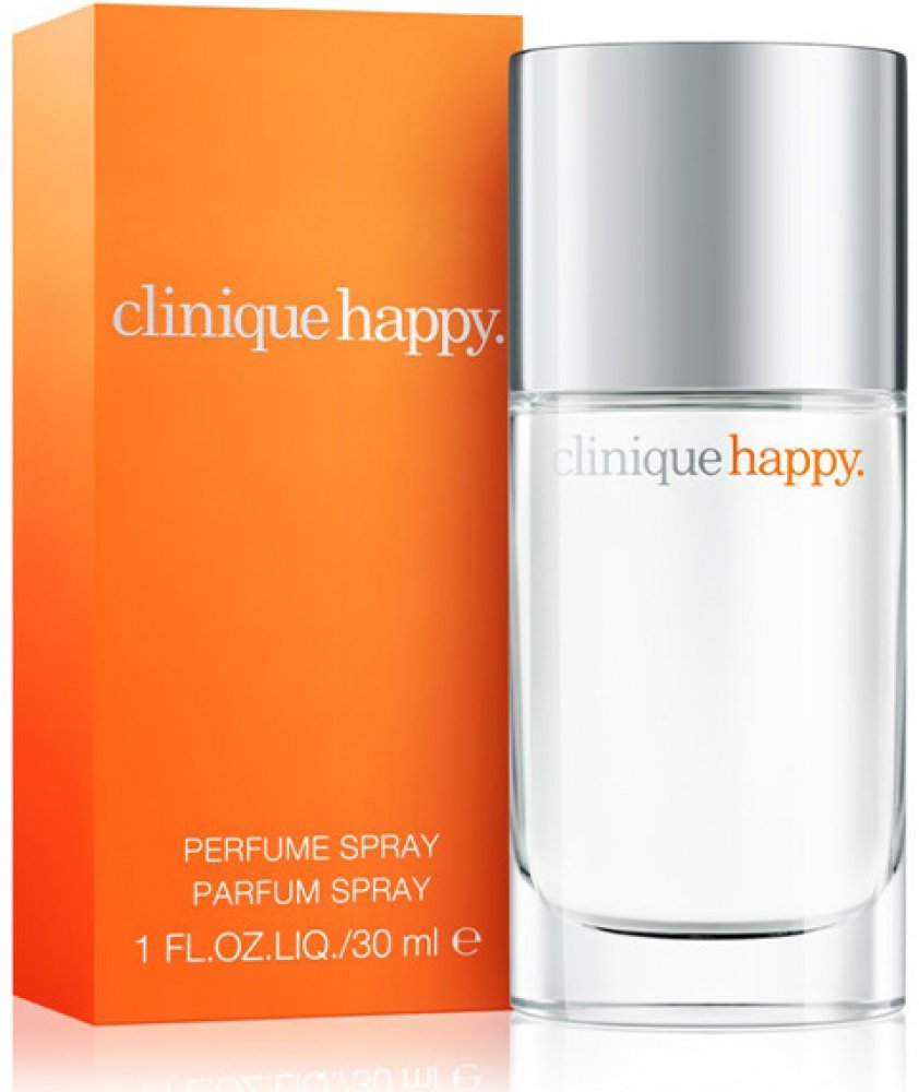 Clinique 30 ml dámské parfémované vody květinové pro denní nošení s celodenní výdrží (4-8h) svěží a energické Happy 1998 ze Švýcarska mainstreamové bergamot, červený grapefruit, jablko, mandarinka frézie, konvalinka, lilie, orchidej, růže ambra, magnólie, mimóza, pižmo, vetiver se střední projekcí letní kompatibilní s jablkem, s červeným grapefruitem, s frézií Vivantis klasické TSA kompatibilní (≤100ml) rozprašovač 140 g standardní