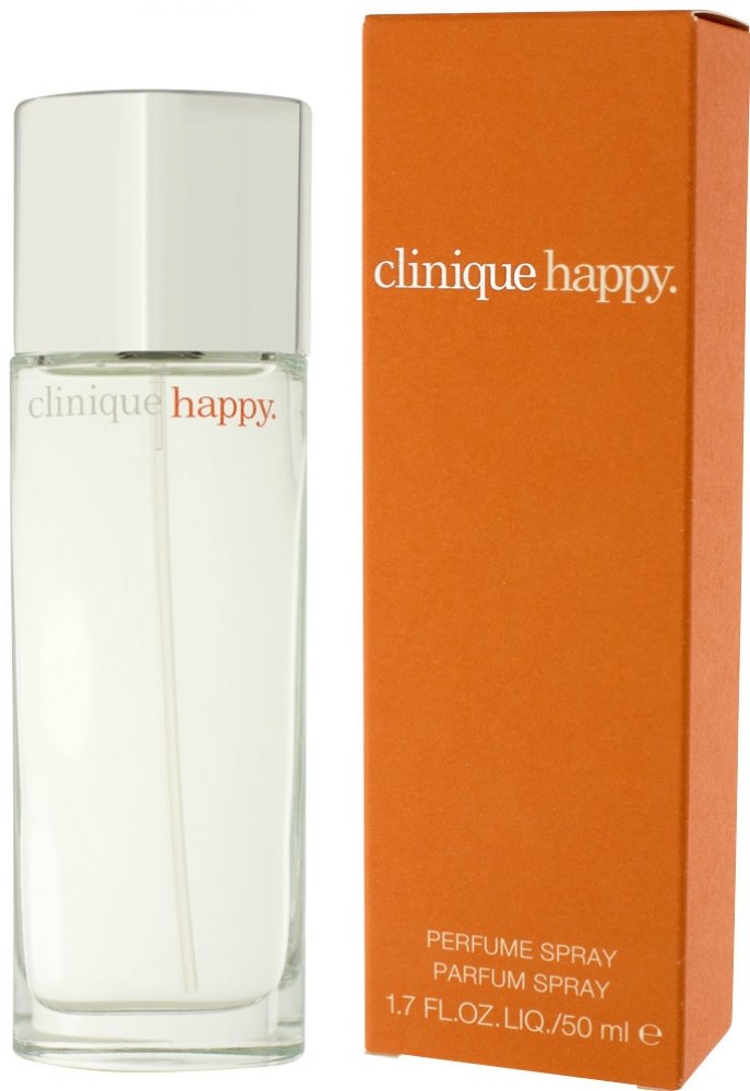 Clinique Happy je elegantní a moderní dámská vůně, která vás rozveselí a přijemně naladí. Hlava vůně skrývá grapefruit, květy mandarinky, vavřín a citrusové plody. Srdce bije pro orchidej, frézii, konvalinku a růži. Vše dokresluje mimóza, lilie a magnólie. Této směsi citrusů a květin prostě neodoláte. Vůně byla uvedena na trh v roce 1998.
