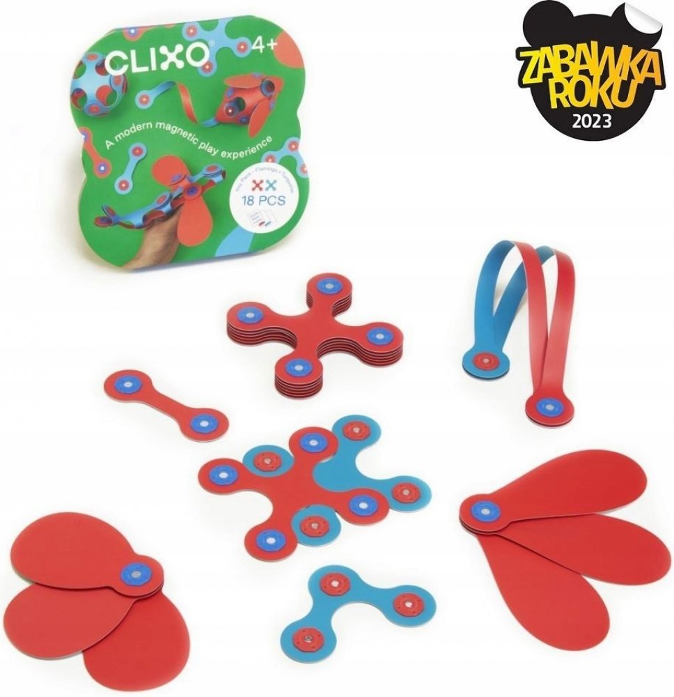 CLIXO Itsy Green & Blue - 18 kusů je flexibilní, velmi lehká, magnetická stavebnice ze syntetického papíru, v červené a tyrkysové kombinaci, která je inspirována origami a zároveň je to skvělá Montessori hračka. Tato stavebnice je založena na principu spojování různých tvarů a dílků přichycením červených a modrých magnetů k sobě. Sada Itsy obsahující různé tvary umožňuje stavět takové kombinace, j...