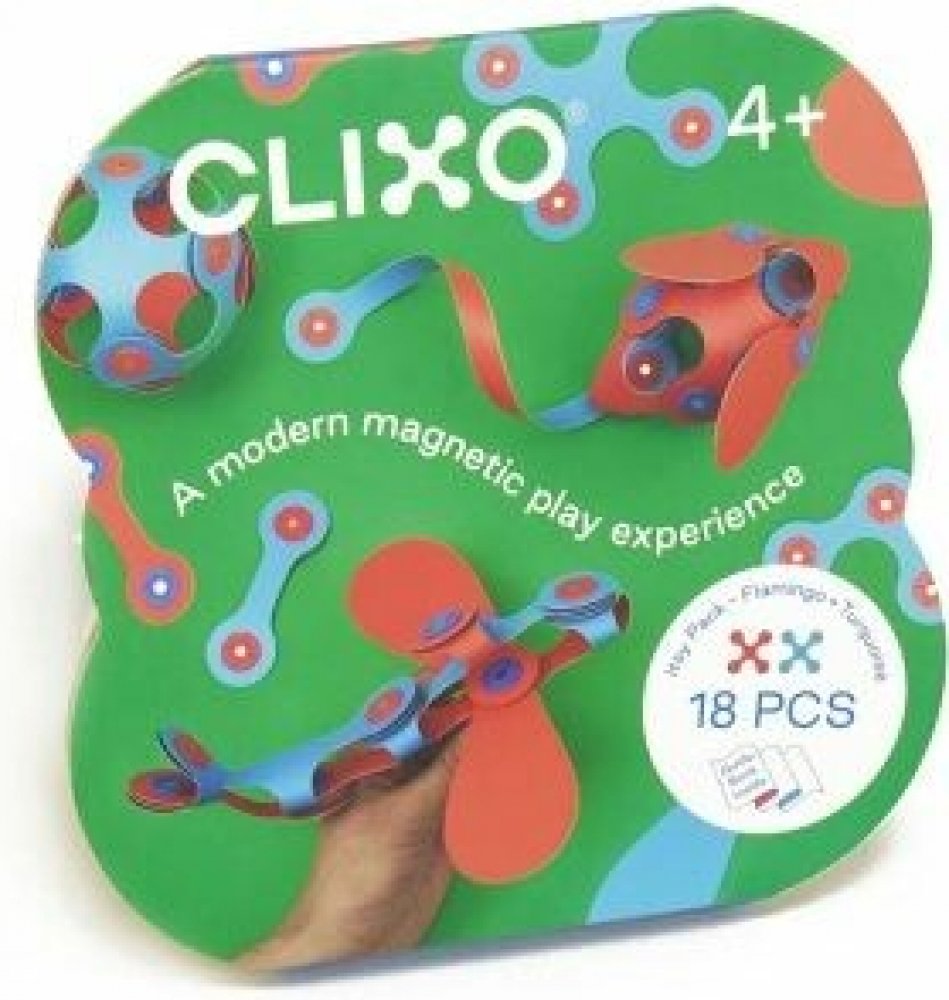 Clixo Flexibilní magnetická stavebnice 18 ks Flamingo/tyrkysová