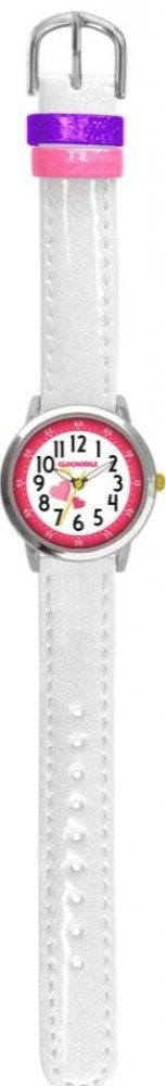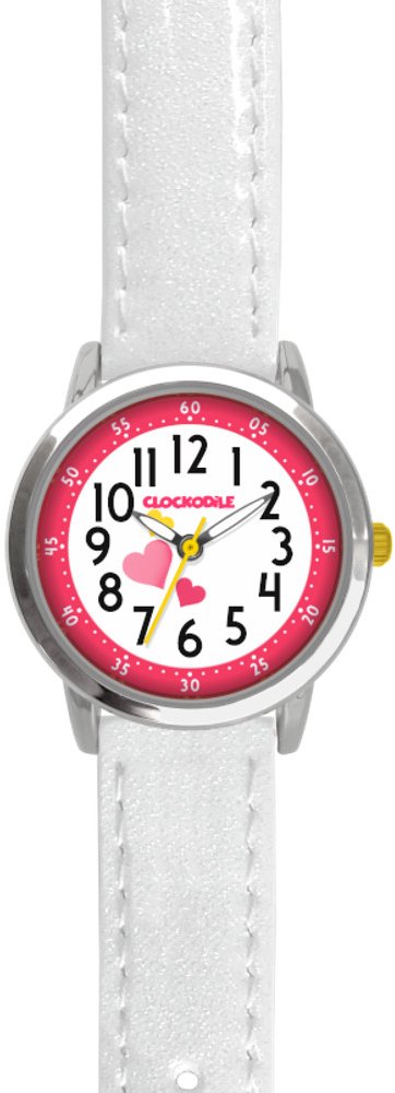 Clockodile analogové syntetická kůže klasické dětské bateriové - quartz pro běžné použití (30–50 m) bezniklová slitina 50 m bateriové minerální bez osazení kulaté bílá vícebarevná trnová spona 1.4 cm na ruku se srdíčky s arabskými číslicemi s nenáročnou údržbou (quartz) bez chytrých funkcí