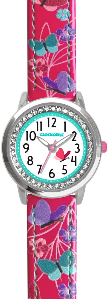 Clockodile analogové syntetická kůže klasické dětské bateriové - quartz vhodné k plavání (50–100 m) 28.0 mm bezniklová slitina 50 m bateriové 100 g minerální 17.5 cm zirkony kulaté růžová bílá na přezku 1.4 cm na ruku české zvířecí s arabskými číslicemi 2.8 cm malé pevná s nenáročnou údržbou (quartz)