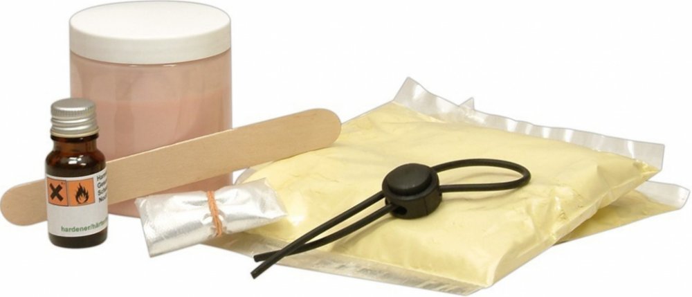 Sada skládající se z (vnější obal sady slouží jako) forma, upínací pásek na penis, manžeta, lahvička s tužidlem, 2 x 3-D gel, silikonová guma, 1 pár plastových rukavic, dřevěná špachtle, podrobný návod k použití. Dostačující pro velikost penisu (vztyčeného) do délky 20 cm a Ø do 4 cm.