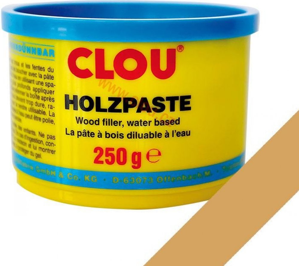 Tmel HOLZPASTE od Clou je bezzápachový, vodou ředitelný, pochozí, rychle a jednoduše zpracovatelný. Vytvrzený tmel...