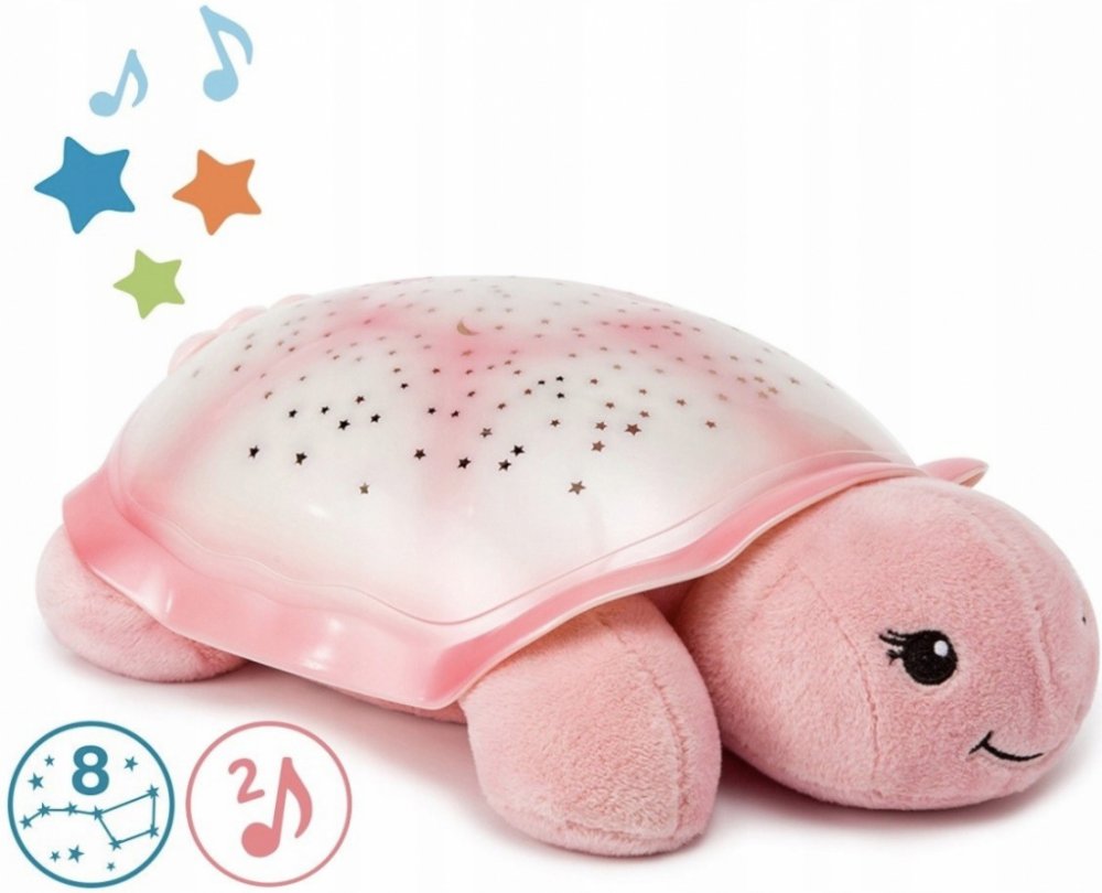 Noční světlo v podobě želvy s projekcí hvězdné oblohy a hudbou pomůže vašemu dítěti uklidnit se a snáze usnout. Promění dětský pokoj v klidnou oázu pod noční oblohou. Světelný projektor přehrává dvě melodie a promítá na stěnu či strop hvězdnou oblohu s osmi známými souhvězdími ve třech barvách světla.