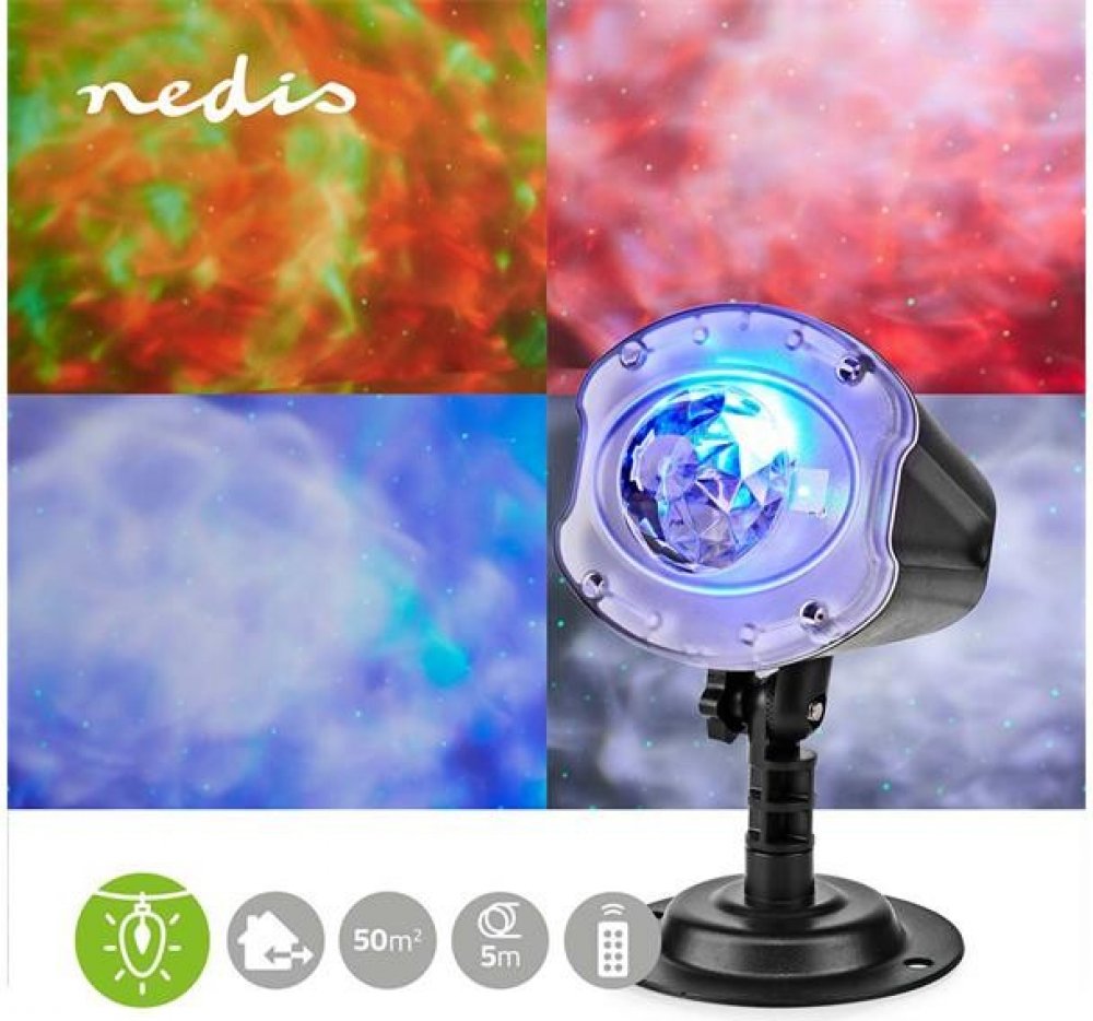 Tento Nedis® LED a Laserový projektor dodá správnou atmosféru jakékoli výzdobě. Nastavením barvy, jasu a rychlosti pohybu si můžete promítání upravit přesně podle svých představ. K navození atmosféry typického zimního večera je projektor vybaven zeleným laserem, který motivem hvězd vytváří dojem noční oblohy. Stačí jej umístit přesně, kam potřebujete, ať už ven nebo dovnitř. Nadstandardně dlouhý napájecí kabel o délce 5 metrů zajišťuje maximální flexibilitu, i když je zásuvka daleko. Použití je snadné: zapojte projektor do zásuvky, upevněte jej na montážní patku, nebo do země pomocí zapichovacího hrotu a pak už si jen užívejte příjemnou atmosféru. Každá volná plocha o rozloze až 50 m² se může stát promítacím plátnem.Dálkové ovládání a nastavení automatického vypnutí zajišťuje maximální pohodlí.- Dekorativní LED a laserový projektor- Barevné LED diody a zelený laser, který promítá motiv noční oblohy- Možnost nastavit automatické vypnutí po 2, 4 nebo 6 hodinách- Vhodný pro vnitřní i venkovní použití- Dálkové ovládání pro maximální pohodlí- Pokryje plochu až 50 m²- Nadstandardně dlouhý napájecí kabel o délce 5 metrů zajišťuje maximální flexibilitu- Vhodný pro použití v teplotním rozmezí –10 až 45° CVlastnosti:- Vstupní napětí. 220 - 240 V AC 50/60 Hz- Typ zdroje napájení: Síťové napájení- Materiál: Plast- Maximální spotřeba energie: 6 W- Dálkové ovládání: Ano- Včetně baterií: Ano- IP krytí: IP44- Provozní teplota: -10 - 45 °C- Zástrčka: Euro / Typ-C (CEE 7/17)- Vnitřní / venkovní: Vnitřní nebo Venkovní- Zdroj světla: LED / Laserové- Kabelová barva: Černá- Vyměnitelné lampy: Ne- Držák: Pozemní hrot / Nohy- Maximální velikost projekce: 50 m²- Funkce časovače: 2h/4h/6h- Lehké efekty: Barevné diody LED a zelený laser- Typ dekorativního světla: LED a laserový projektor- Laserová třída: Třída 1Obsah balení: - Dekorativní LED/Laserový projektor- Dálkové ovládání- Venkovní napájecí adaptér- Montážní patka- Montážní materiály- Zapichovací hrot- Stručný návod