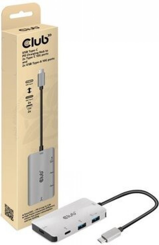 USB Gen2 Type-C PD Charging Hub to 2x Type-C 10G ports and 2x USB Type-A 10G ports The Club 3D CSV-1543 is an USB Gen2 Type-C PD Charging Hub to 2x Type-C 10G ports and 2x USB Type-A 10G ports.The two USB Type-A ports are designed for transmitting data and one of the two USB Type-A ports can provide 1.5A charging for the connected USB Type-A devices (mobile phones, tablets, U-disk, etc). One of th...
