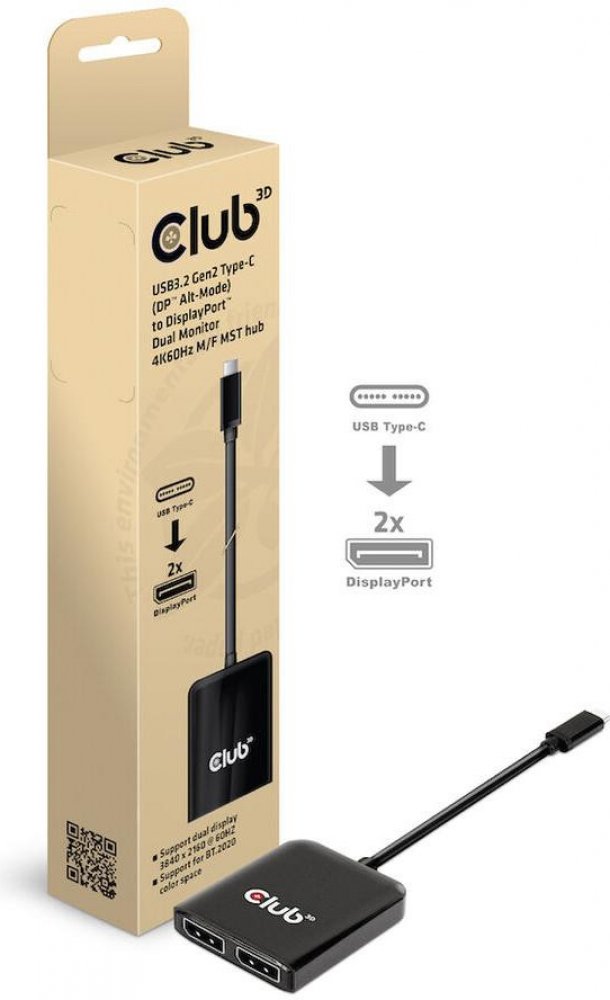USB3.2 Gen2 Type-C (DP Alt-Mode) na DisplayPort Dual Monitor 4K60Hz M/F MST hub