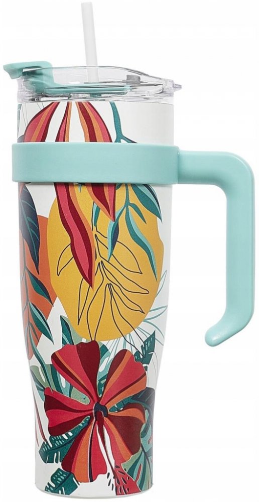 Představujeme vám stylový a praktický termohrnek o objemu 1,2 litru, ideální pro osvěžující nápoje během horkých dnů nebo pro hydrataci po celý den. Hrnek má atraktivní tropický design s barevnými listy a květy, díky kterému vynikne doma, v kanceláři i na cestách. Je vybaven pohodlným plastovým uchem pro snadné držení, průh...