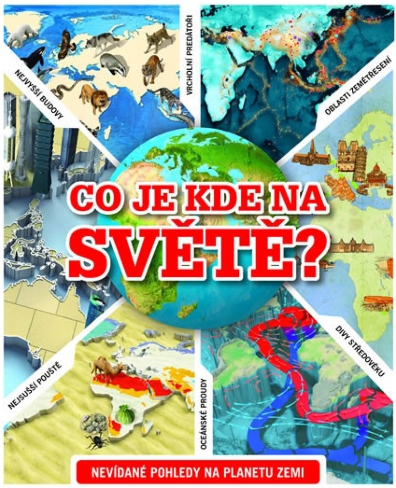 Kniha Co je kde na světě? je jedinečná ilustrovaná encyklopedie přinášející informace o všem, co se nachází na naší zemi - od vraků lodí a hradů až po divokou přírodu a hurikány.