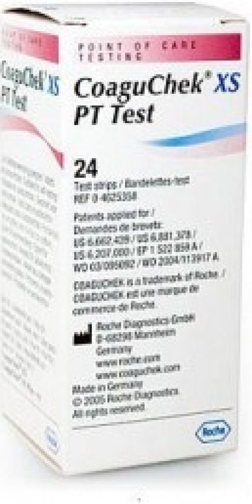 Meracie prúžky do koagulačného analyzátora CoaguChek určené na kvantitatívne stanovenie protrombínového času z kapilárnej krvi alebo z neupravenej venóznej krvi.